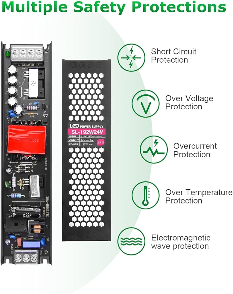 محول الطاقة 24 فولت 8 أمبير سيلبي احتياجاتك من الطاقة بنسبة 90% للإلكترونيات المنزلية والمكتبية 24 فولت، مثل WS2812B WS2811 5050 3825 أضواء الشريط LED والطابعة ثلاثية الأبعاد ومضخم الصوت والموجه اللاسلكي وADSL Cats وHUB وGPS وDVR وكاميرا الويب ومكبر الصوت والمزيد أجهزة 24 فولت.
