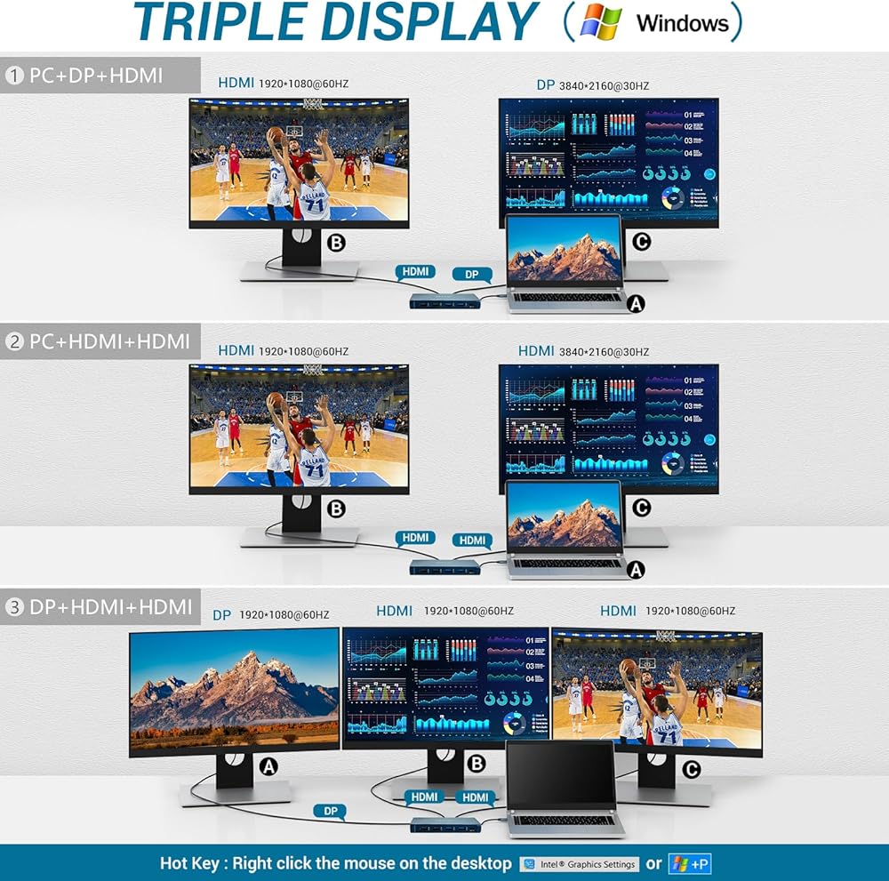 محطة إرساء USB C، OTAITEK 12 في 1 USB C Hub شاشة ثلاثية (مزدوج 4K HDMI، DP) 5XUSB، PD، إيثرنت، SD/TF، ​​صوت 3.5 مم، محطة إرساء كمبيوتر محمول لأجهزة Mac/Dell/Surface/HP