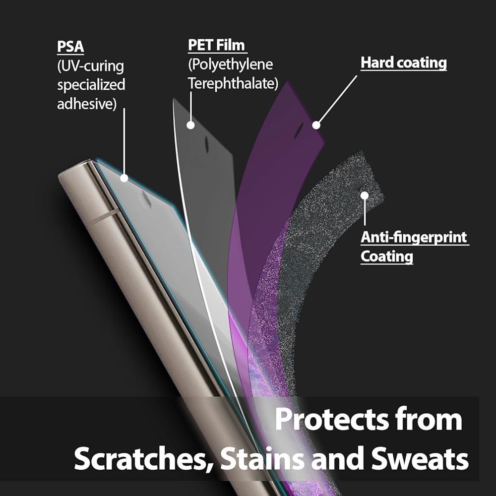 [ملاءمة مثالية] قبل المعالجة، يلتصق فيلم UV GEN، وهو أكثر مرونة من PET العام، بشكل مثالي بشاشة Galaxy 24 Ultra. يتم تثبيت طبقة GEN الرقيقة بشكل مذهل على الشاشة باستخدام ضوء معالجة للأشعة فوق البنفسجية لحماية الشاشة. تصميم الحجم الدقيق يترك مساحة كافية لتناسب الحافظة بشكل مثالي.