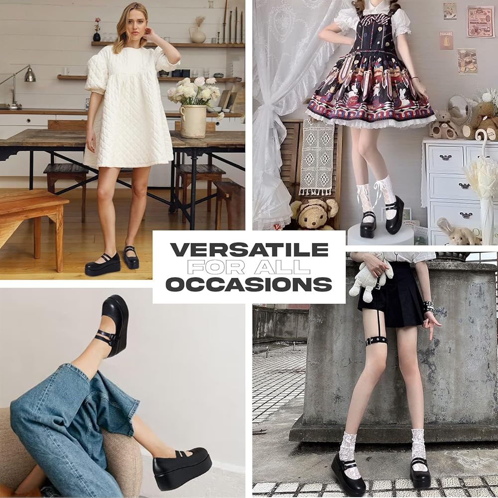 أحذية Mary jane مناسبة للمكتب، والأعمال التجارية، والمدرسة، والتسوق، والشارع، والحفلات، والمواعيد، والزفاف، والكاجوال، وليالي الأفلام، والارتداء اليومي، والمنزل، والنوادي، والعطلات، والهالوين، والكريسماس، والمهرجانات؛ هذه الأحذية المريحة من ماري جين ذات الشكل المسطح مثالية للفساتين والتنانير والسراويل القصيرة والزي المدرسي والجينز وما إلى ذلك