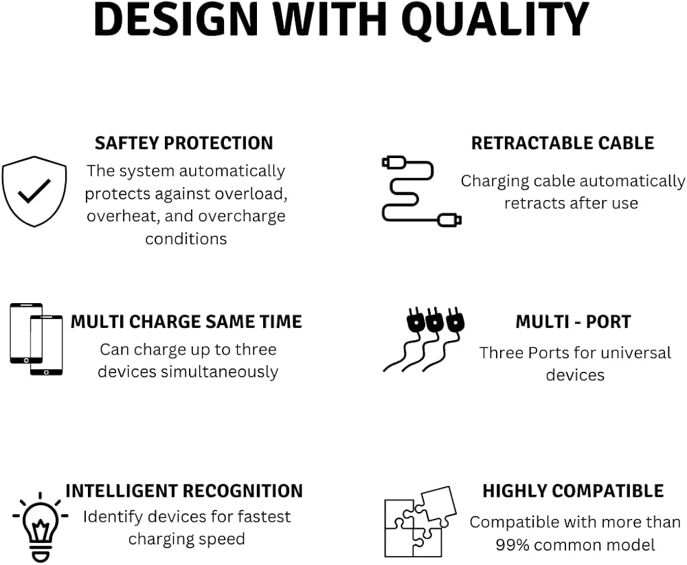 - قوي جدًا مع غسالة مضادة للانزلاق؛ بغض النظر عن الرحلة، لن تسقط أجهزة الشحن أبدًا