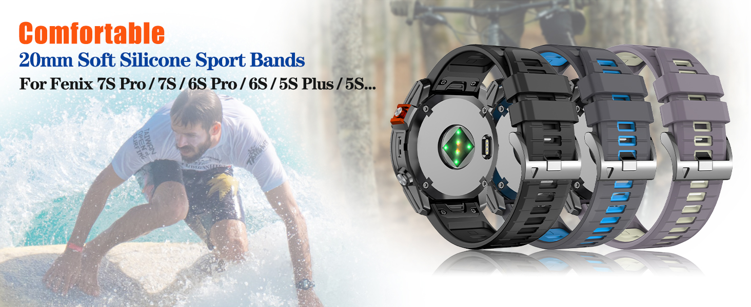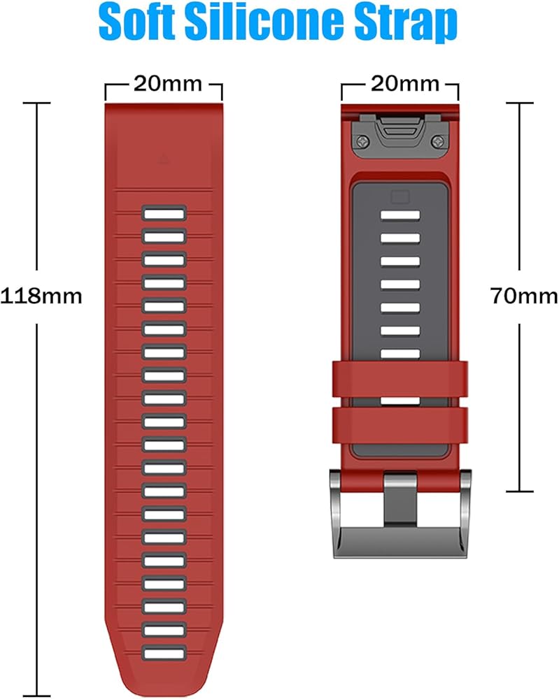 حزام سيليكون سريع التركيب 20 مم متوافق مع Garmin Fenix 7S/Fenix 7S Pro/Fenix 6S/Fenix 6S Pro/Fenix 5S/Fenix 5S Plus/epix Pro 42MM/Approach S70 42mm/Descent Mk3 - 43 مم/Descent Mk2s. ملحوظة: ليس لـ 22 مم (ليس لـ Fenix 7/7 Pro/6/6 Pro/5/5 Plus) و26 مم (ليس لـ Fenix 7X/7X Pro/6X/6X Pro/5X/5X Plus).