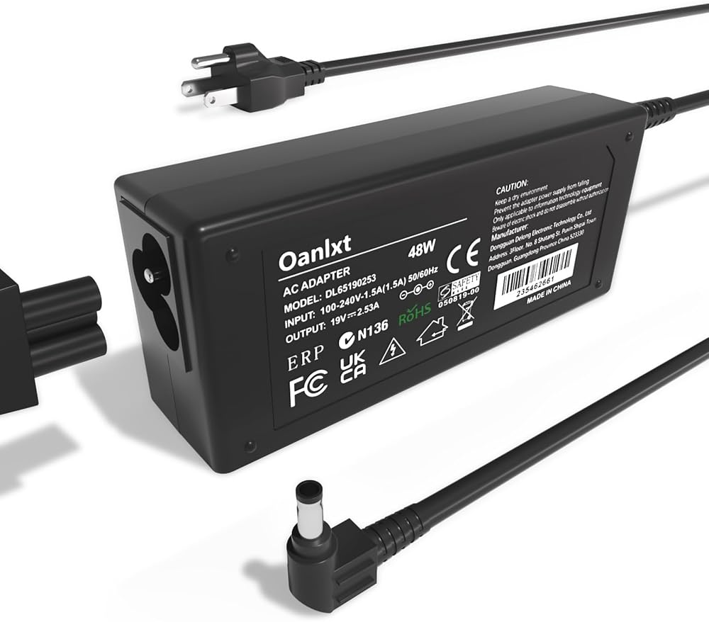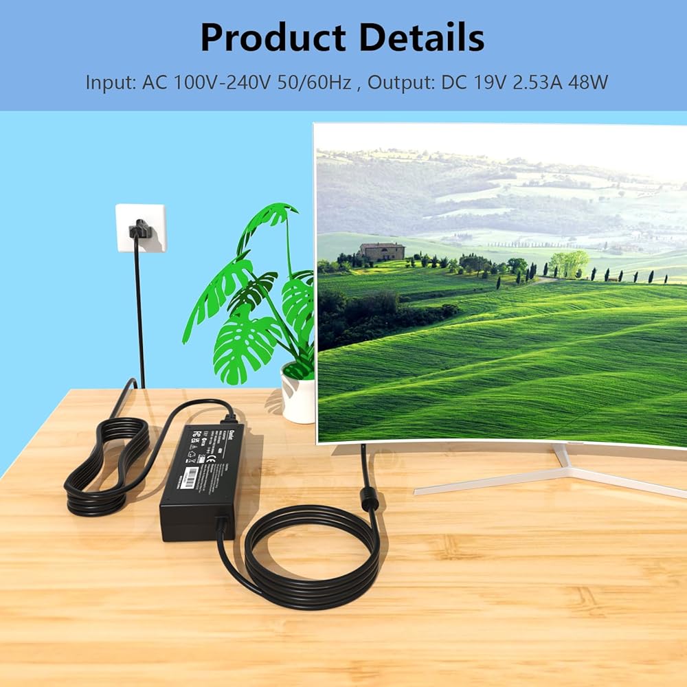 • 【Specification】: Input: AC 100V-240V 50/60Hz , Output: DC 19V 2.53A 48W.