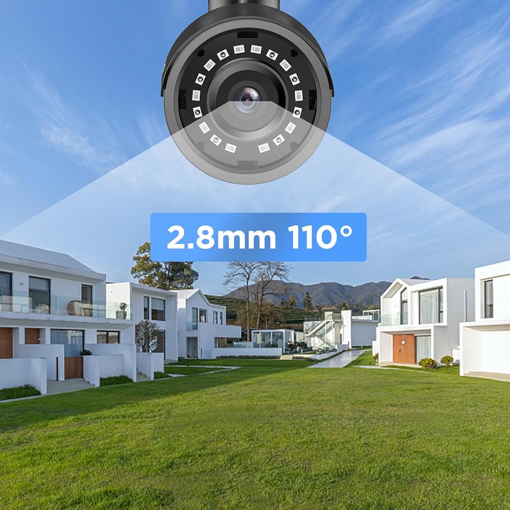 نظرة عامة: دقة 8 ميجابكسل فائقة الوضوح بدقة 3840 × 2160، ومزودة بعدسة واسعة الزاوية مقاس 2.8 مم، ومجال رؤية يصل إلى 110 درجة. توفر مصابيح الأشعة تحت الحمراء القوية رؤية ليلية عالية الجودة ومسافة مرئية ليلية أطول تصل إلى 100 قدم، وتوفر لك صورة واضحة تمامًا حتى في الظلام تمامًا.