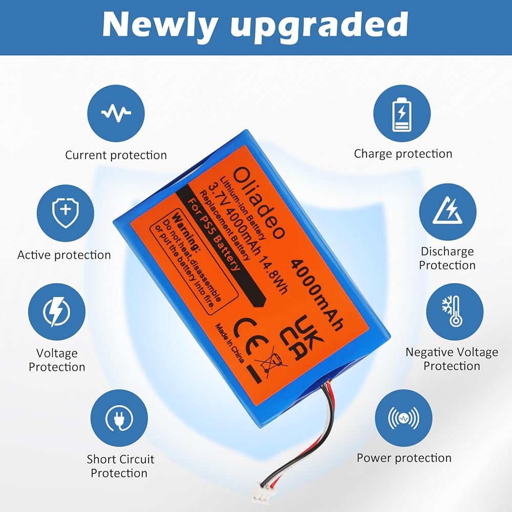 حماية السلامة: بطارية بديلة PS5 مدمجة في شريحة ذكية، تمنع الشحن الزائد، والتفريغ الزائد، وارتفاع درجة الحرارة، وحماية متعددة للدوائر القصيرة، لضمان سلامة شحن البطارية، وتحسين عمر البطارية.