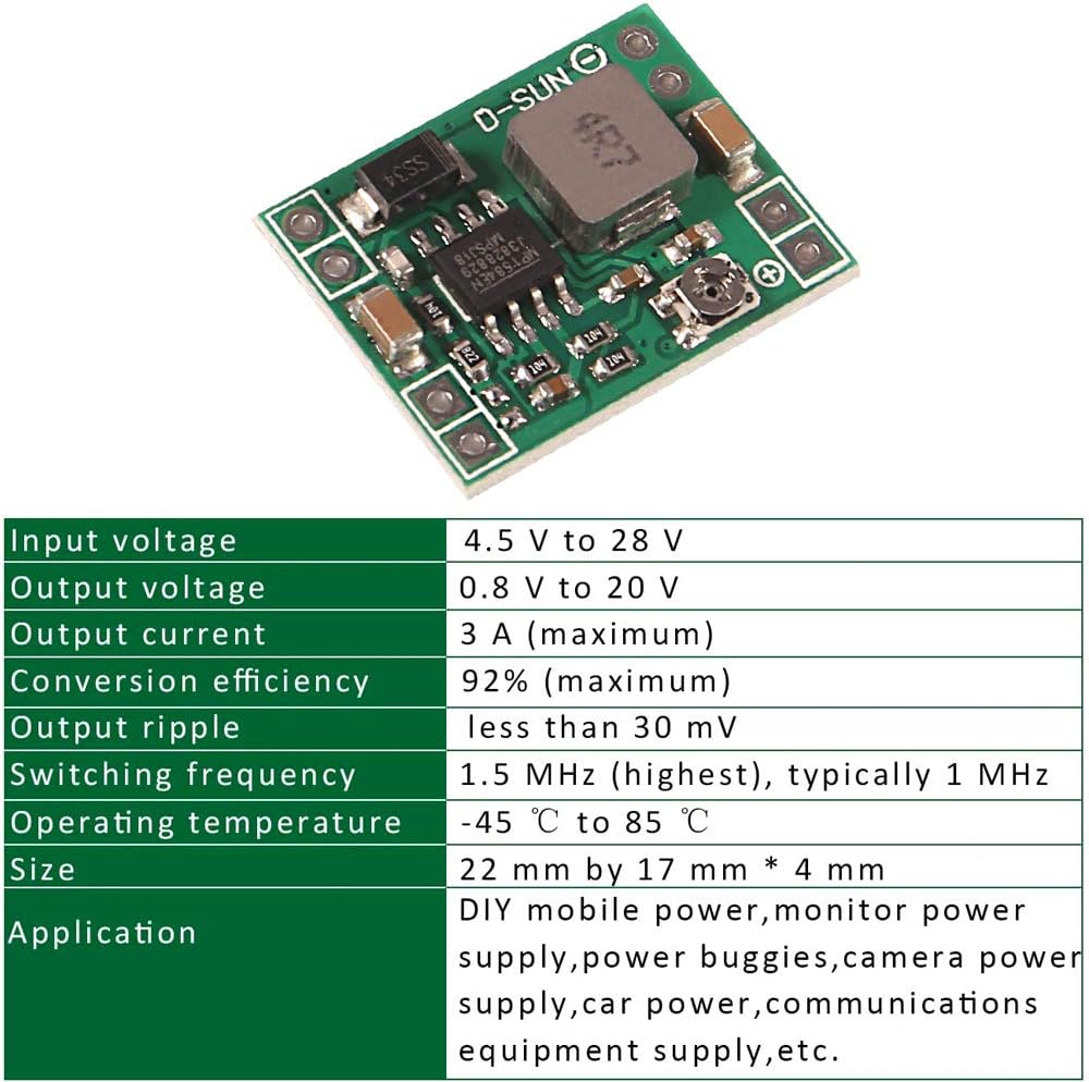 • تموج الإخراج: أقل من 30 مللي فولت؛ الحجم: 22 ملم في 17 ملم في 4 ملم.