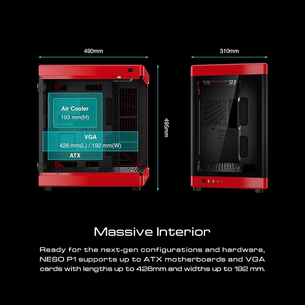 MASSIVE INTERIOR WITH CABLE MANAGEMENT HOOKS: Ready for the next-gen gaming case configurations and hardware, NESO P1 supports up to ATX motherboards and VGA cards with lengths up to 426mm and widths up to 192 mm