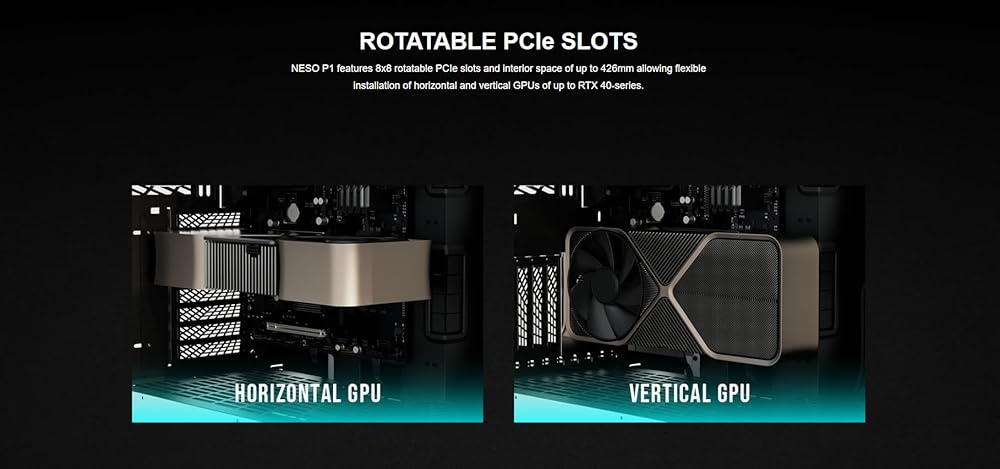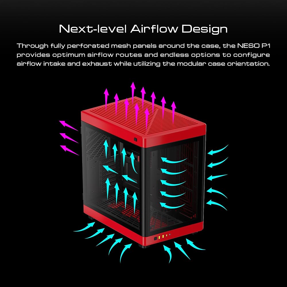 TWO-WAY ORIENTATION WITH DUAL CHAMBER & ONE-TOUCH OPEN: The NESO P1 PC case features a dual-chamber design and a distinctive trapezoidal form that allows you to showcase your hardware in either horizontal or vertical orientation. The one-touch open easily performs upgrades and maintenance.