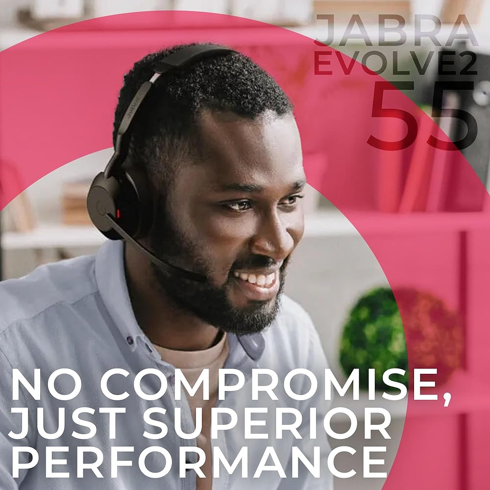 Jabra Evolve2 55 مللي ثانية Mono Bluetooth Noise Develing سماعة الرأس (Link380a) متوافقة مع Mac PC والهواتف الذكية والأجهزة اللوحية - مع قطعة قماش الألياف الدقيقة GTW وخطة دعم الذهب العالمية