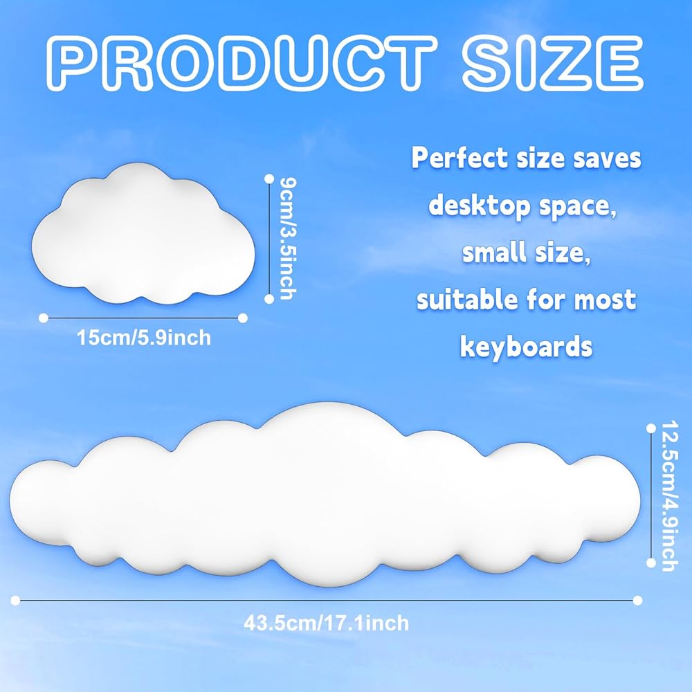 Ergonomic Design: The cloud wrist rest is designed to provide ergonomic support for users during long typing or mouse usage sessions. The soft cushioning material conforms to the natural shape of the wrist, reducing pressure and enhancing a more comfortable typing or gaming experience.