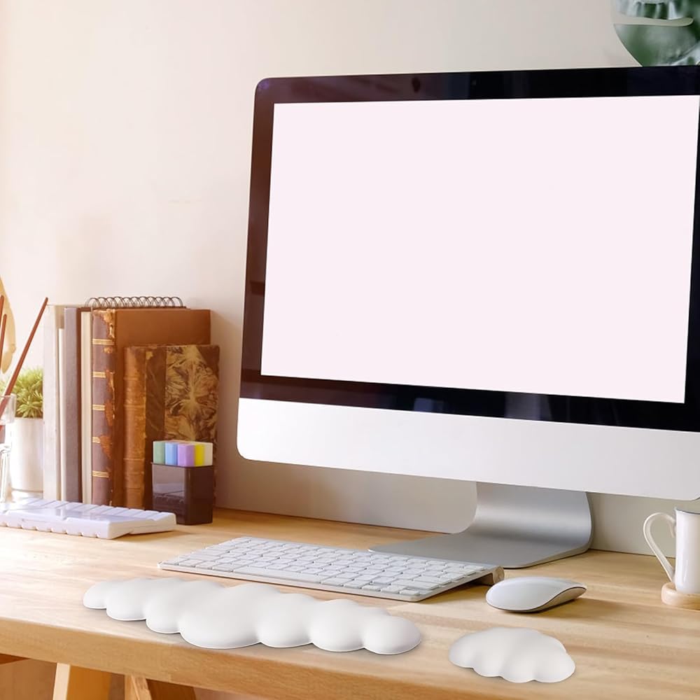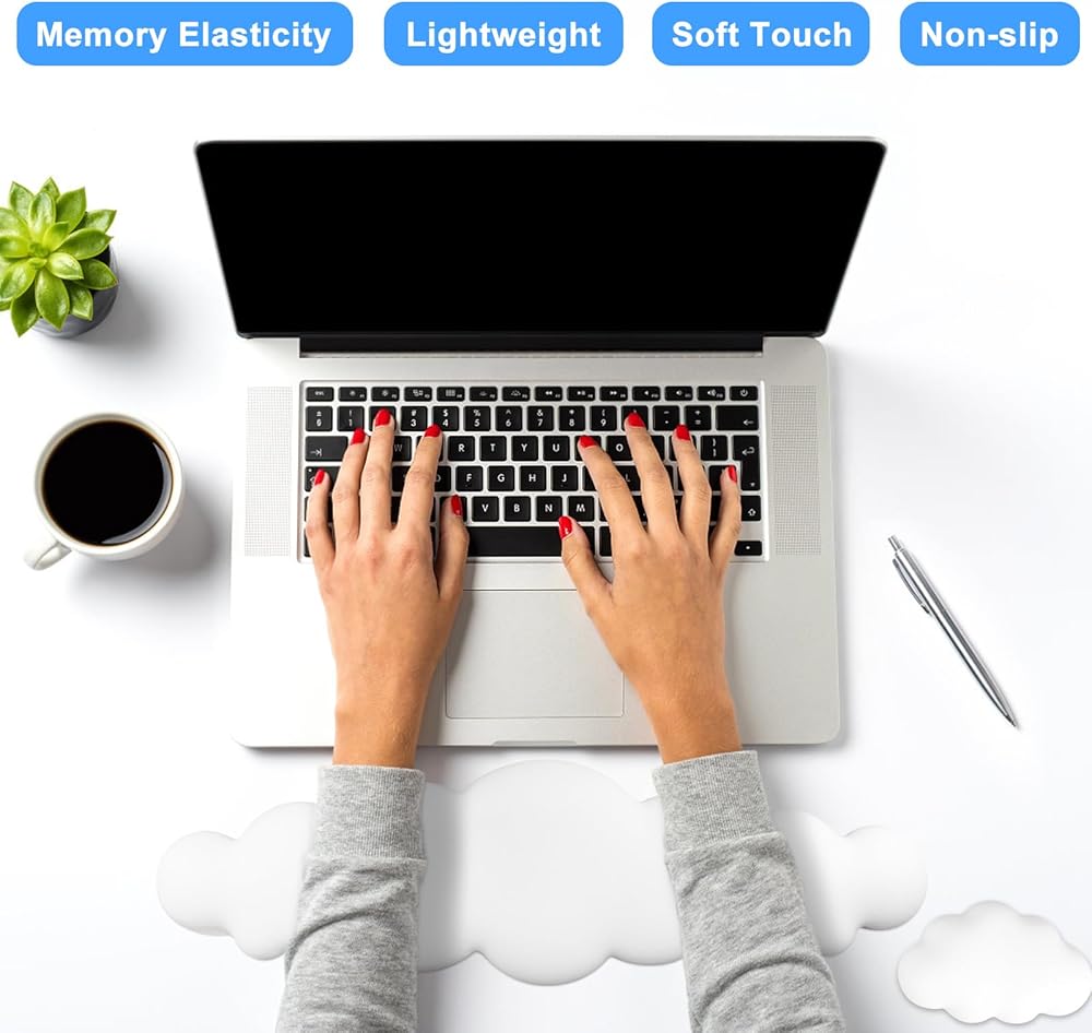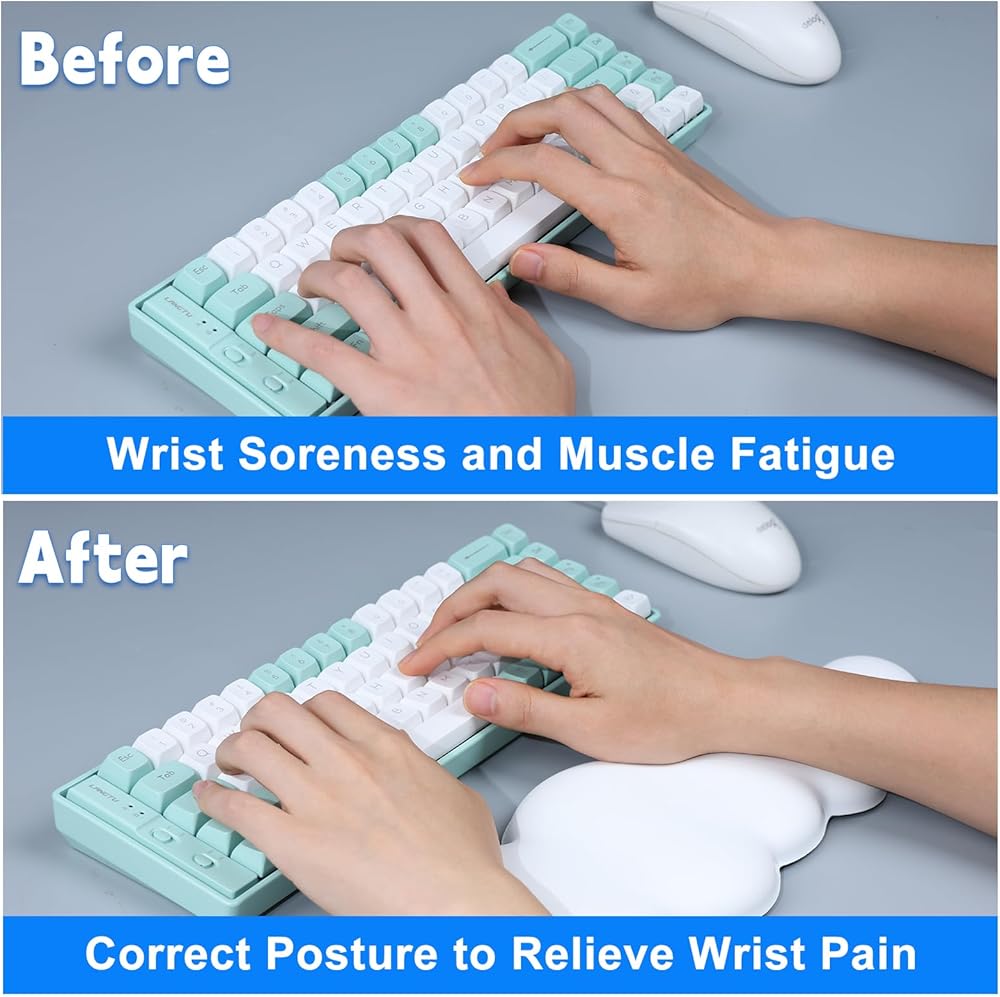 Pain Relief: The cloud-like cushion in the cute keyboard and mouse pad evenly distributes pressure on the palms and wrists. By reducing pressure points, these wrist supports for keyboard help prevent discomfort and pain caused by prolonged typing or mouse usage. This ergonomic design promotes healthier postures, reducing the risk of repetitive strain injuries.