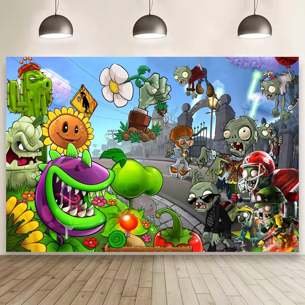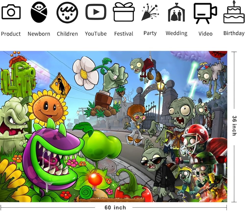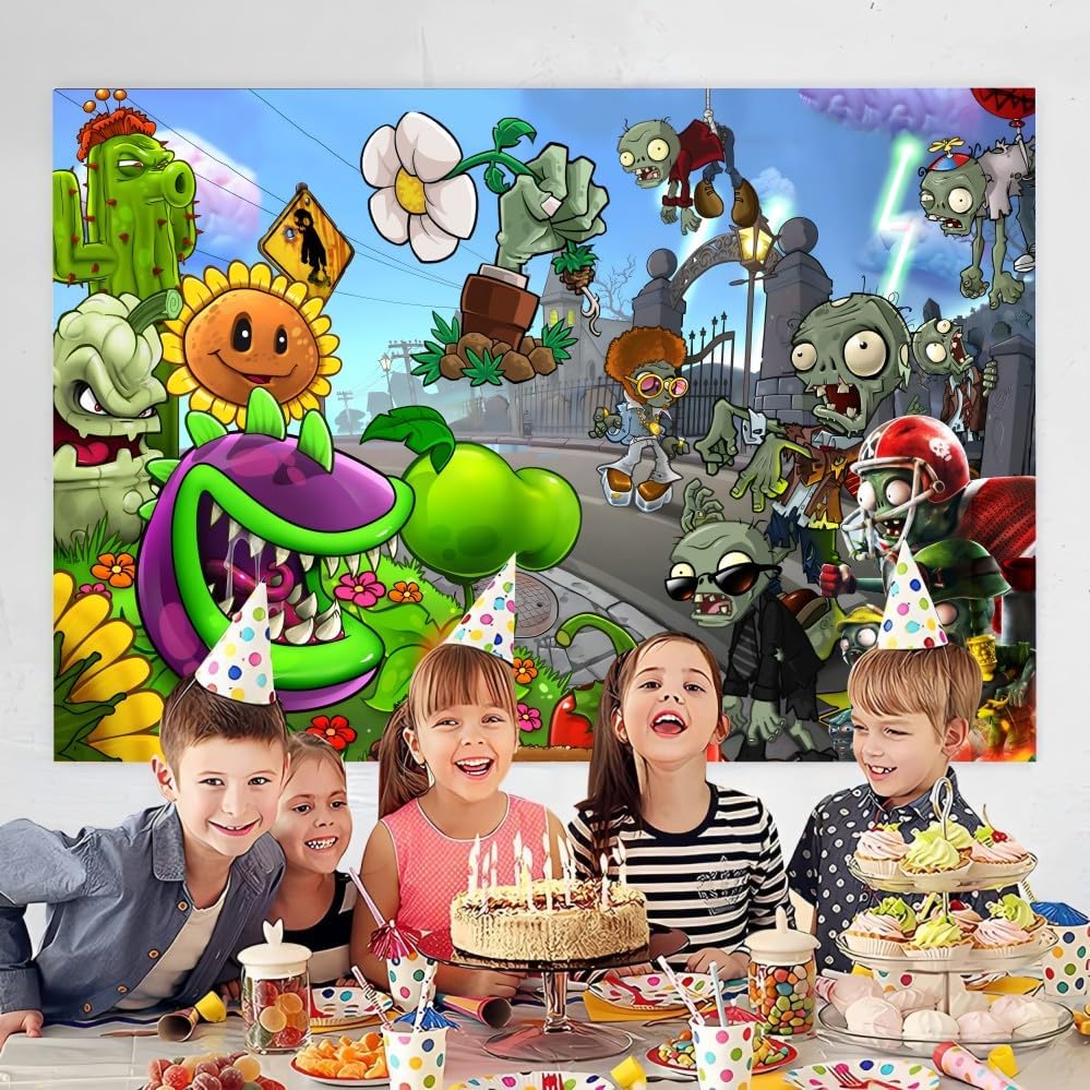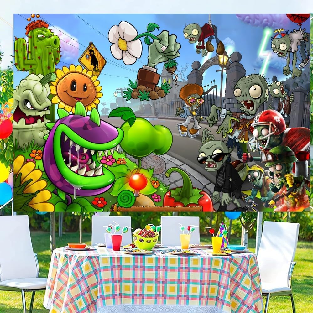 Plants and Zombies Background Party Decorations Birthday Banner Backdrop for Plants and Zombies Party Supplies (5x3ft)
