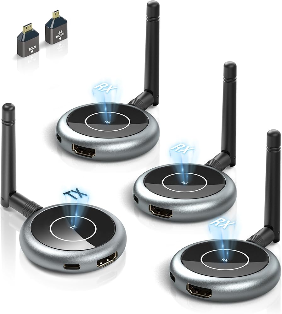 ✅ [توسيع متعدد الشاشات في الوقت الحقيقي] يتم توصيل كل جهاز إرسال بما يصل إلى 4 أجهزة استقبال. يعد بث الفيديو والصوت بسلاسة إلى شاشات متعددة في وقت واحد أمرًا سهلاً! يستخدم على نطاق واسع للاجتماعات والتدريس والمسرح المنزلي وعرض المتجر وتصوير الكاميرا وما إلى ذلك. من السهل تحقيق شاشات متعددة ولا توجد أسلاك متشابكة غير مرغوب فيها.