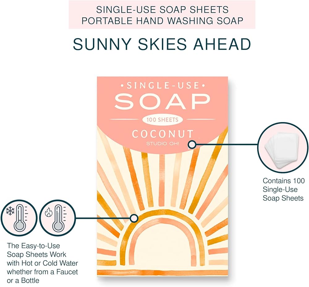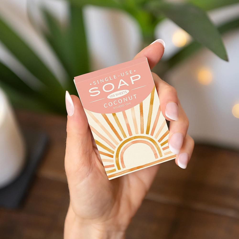 MINI TRAVEL ITEMS: Each box contains 100 paper-thin soap sheets for traveling, and fit perfectly in your travel toiletry kit. This portable camping soap is great for outdoor activities such as camping, sporting events, shopping, or dining out.