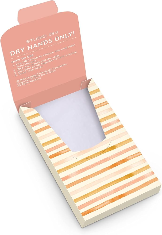 Keep your hands clean wherever you are with these Single-Use Soap Sheets by Studio Oh! These portable soap sheets are perfect for on-the-go handwashing and acts as a travel hand soap which easily fits in a purse, briefcase, or diaper bag. Our antibacterial soap sheets come in a box showcasing original artwork. Make sure to keep our travel size soap sheets in your toiletries bag whenever you venture out.