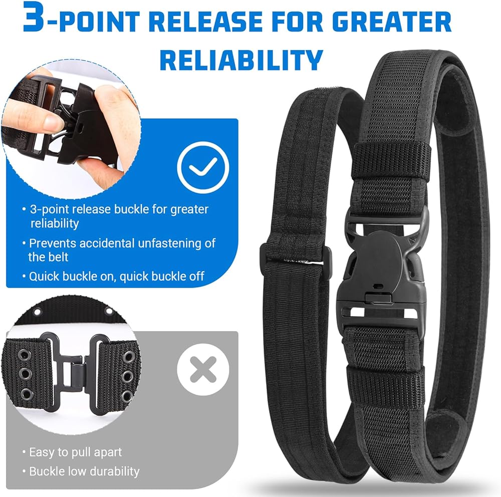 【3-Point Release Buckle】The 3-point buckle is more reliable and safer, preventing the belt from opening accidentally. Just press 3 points simultaneously to release the buckle. The police duty belts is suitable for any law enforcement or security, such as policemen, cop, security guard, correctional officer, armed guard, sheriff, etc.