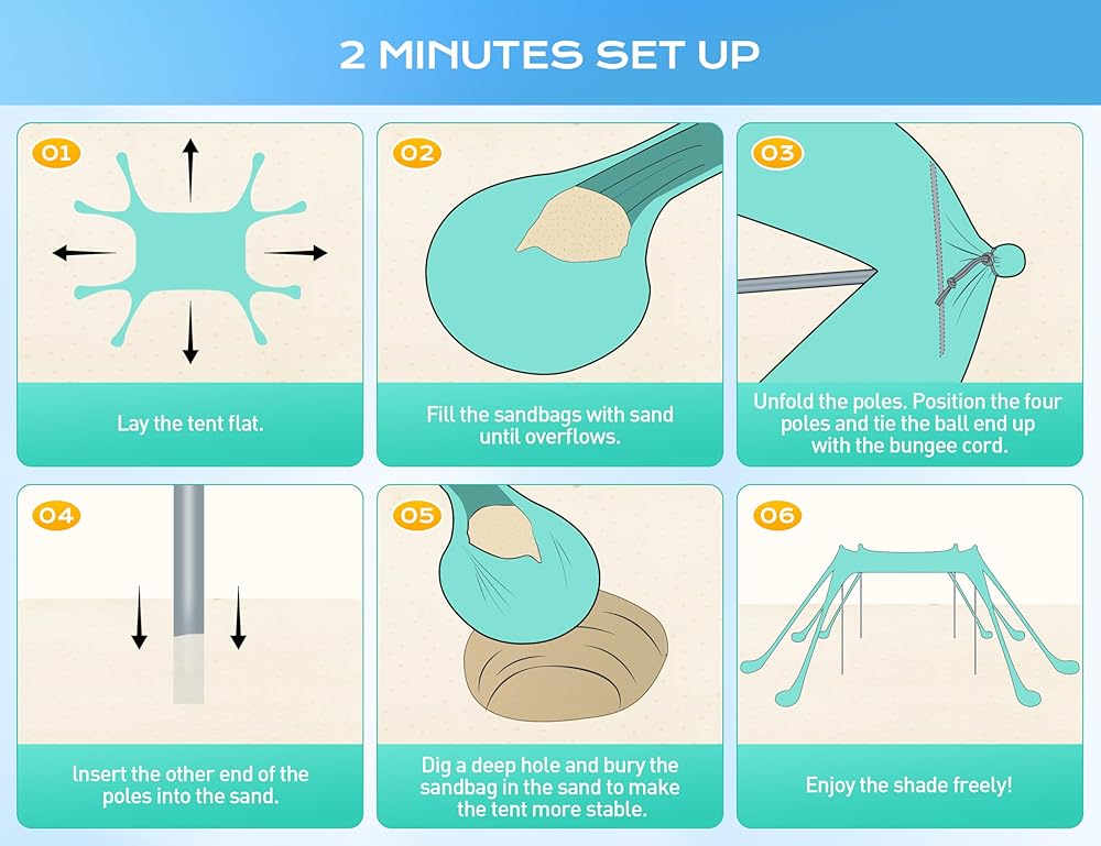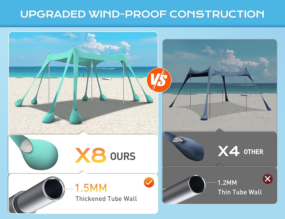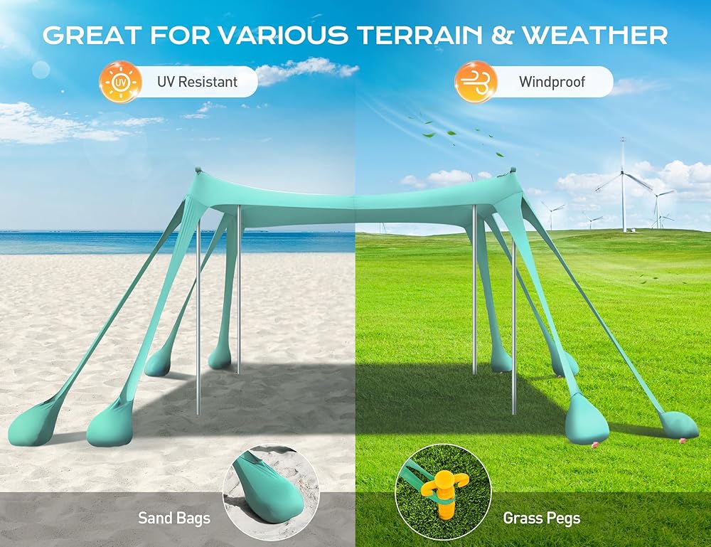 【ثبات ومتانة معززة】مع 8 أكياس رمل كبيرة استثنائية و4 أعمدة ألومنيوم سميكة، يوفر مأوى الشمس لخيمة الشاطئ المقاومة للرياح ثباتًا فائقًا، ويتفوق على الآخرين بنسبة 80%. مصنوع من نسيج ليكرا عالي التمدد يدوم طويلاً، ويتحمل مختلف الظروف الجوية، ويوفر مأوى موثوقًا لأنشطتك الخارجية. يضيف اللون الأزرق الملكي الأنيق الحيوية، مما يجعله إضافة مثالية لمغامراتك الصيفية الرائعة.