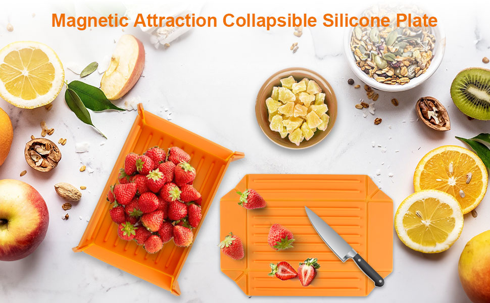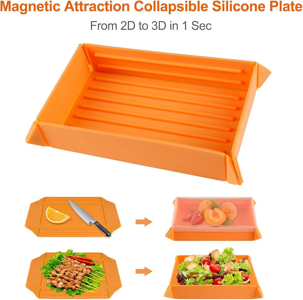 🌠【لوحة قابلة للطي بتصميم مغناطيسي】حاوية الطعام القابلة للطي مصممة بهيكل مغناطيسي، ويمكن طيها بسهولة في صندوق تخزين متعدد الأغراض عن طريق طي الزاويتين المتقابلتين، من 2D إلى 3D في ثانية واحدة. قطعة من طبق السيليكون المسطح تحولت إلى أوعية لتخزين الطعام. الغطاء الشفاف الإضافي سيحافظ على استقرار الأوعية القابلة للطي