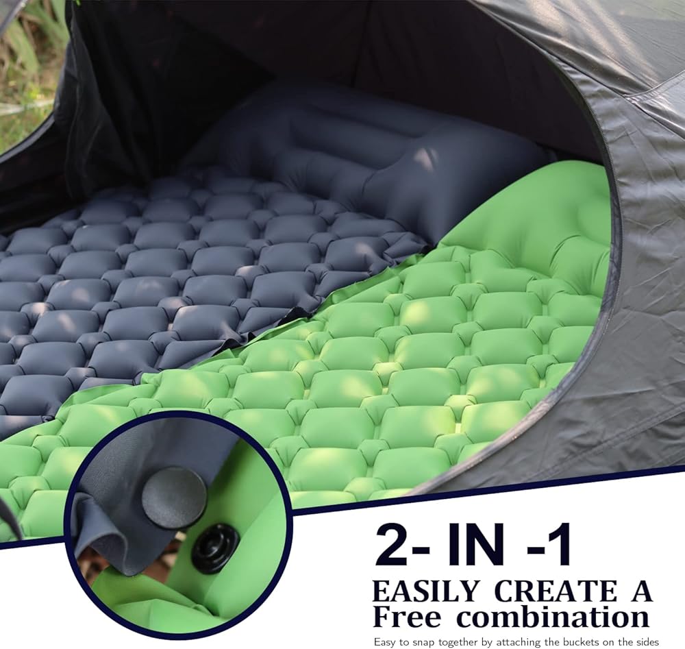 【احصل على سرير إضافي للتخييم مزدوج】قم بتوصيل اثنين من وسادات مرتبة التخييم دون عناء باستخدام الأزرار الجانبية لإنشاء سرير مزدوج واسع. مما يوفر مساحة استرخاء أوسع لنوم أكثر راحة. مثالي لك للخروج للتخييم مع عائلتك وأصدقائك. بالإضافة إلى ذلك، فإن التزامنا بالجودة مدعوم بضمان استرداد الأموال/الاستبدال، مما يضمن أن عملية الشراء الخاصة بك خالية من القلق.