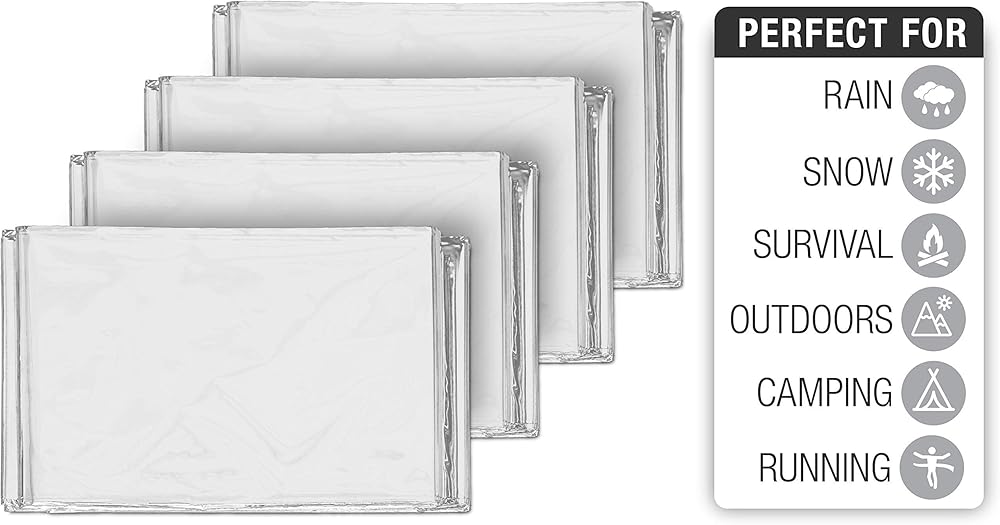 تعكس الحرارة وتحتفظ بها بشكل فعال: تم تصميم هذه البطانيات الحرارية باستخدام تقنية مايلر الألومنيوم المتقدمة مزدوجة الجوانب، لتحقيق أقصى قدر من الاحتفاظ بالحرارة والانعكاس للحفاظ على 90% من حرارة جسمك، وتمنع المطر والثلج والرطوبة تمامًا. مثالية لأي حالة طوارئ ومثالية لمعدات النجاة المستوحاة من ناسا، أو التخييم في الهواء الطلق، أو كجزء أساسي من مجموعة الإسعافات الأولية الخاصة بك، مما يضمن لك البقاء دافئًا عندما يكون الأمر أكثر أهمية.