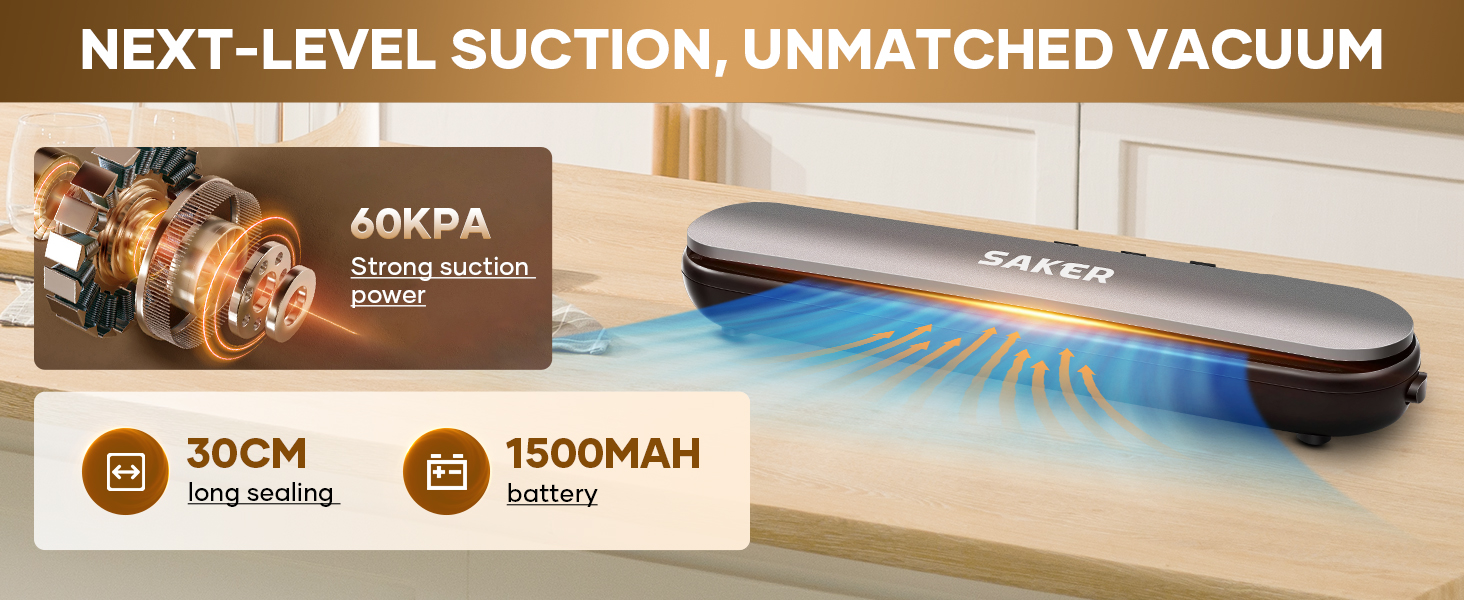 التشغيل الذكي: تسمح الواجهة سهلة الاستخدام بإغلاق الفراغ بلمسة واحدة، مما يجعل من السهل التشغيل بأقل جهد ووقت. إن مانع تسرب الهواء من Saker عبارة عن آلة تفريغ الهواء ببطارية ليثيوم، وهي متينة ومريحة للغاية.