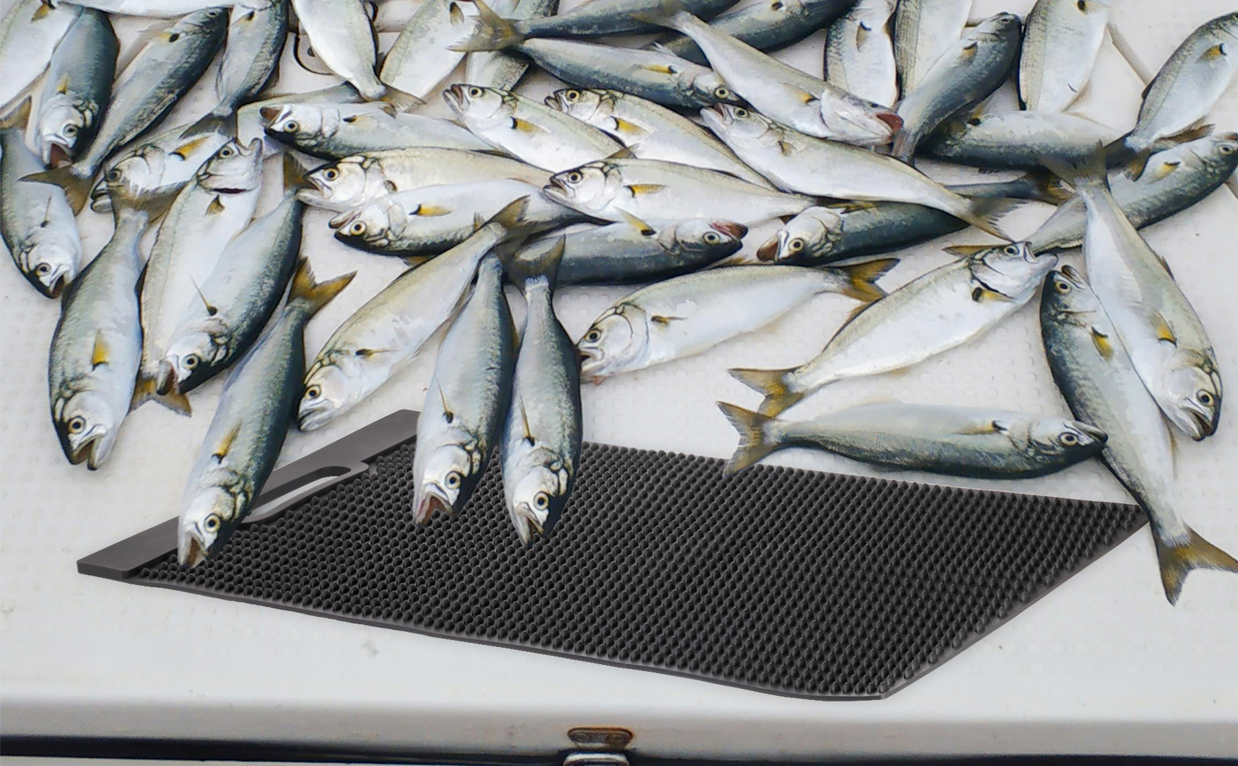 حمل السمكة بشكل آمن: يساعد نسيج السجادة على الإمساك بجلد السمكة، مما يجعل من السهل الإمساك بها والتلاعب بها أثناء التنظيف والتعبئة، ويقلل من خطر الإصابة، ويضمن بقاء السمكة سليمة.