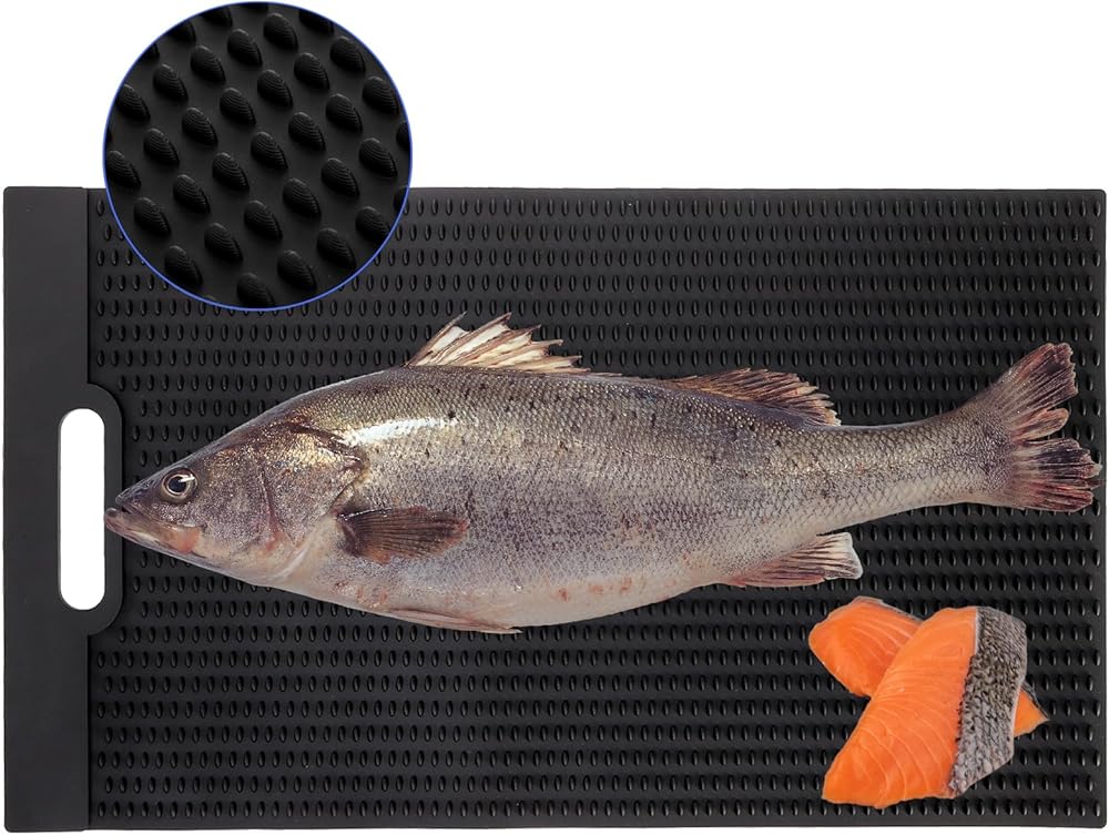 حجم كبير: يبلغ مقاس بساط تنظيف الأسماك الخاص بنا 60.96 × 13.8 سم، مما يوفر مساحة واسعة لتنظيف الأسماك وتعبئتها. سواء كنت تقوم بتنظيف سمكة كبيرة أو عدة أسماك أصغر، فإن هذه السجادة توفر مساحة كافية للعمل بشكل مريح.