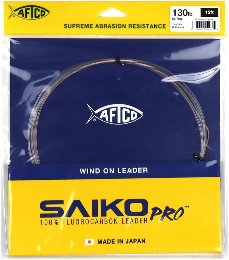 A new addition to the Saiko Fluorocarbon lineup. Available in two lengths: 15 feet from 40lb to 80lb which are tournament legal and 12 feet in 100lb to 300lb. These leaders are hand-crafted in Japan utilizing a whipping process that is not only strong but offers a slim design which is helpful going through clips or guides on your rod.