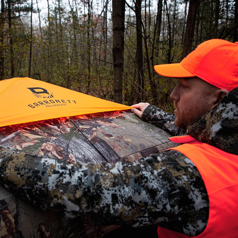 Barronett Blinds® غطاء أمان برتقالي بأربعة جوانب، للاستخدام مع ستائر الصيد ذات الجوانب الأربعة، آمن أثناء الصيد، يتم تثبيته بسرعة وسهولة، برتقالي مشتعل، BA706