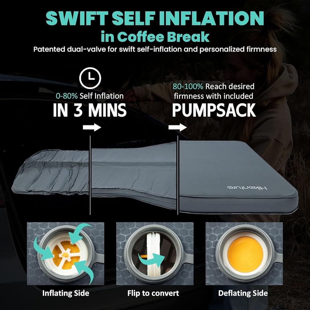 😴 𝗘𝗟𝗘𝗩𝗔𝗧𝗘 𝗖𝗢𝗠𝗙𝗢𝗥𝗧 𝗢𝗡 𝗧𝗛𝗘 𝗥𝗢𝗔𝗗 - حوّل الموديل Y الخاص بك إلى ملاذ مريح في أي مكان وفي أي وقت! مع مزيج فريد من نوعه من الإسفنج والهواء بسمك 8.15 سم، يمكن أن تدعم وسادة النوم الخاصة بنا للتخييم ما يصل إلى 440 كجم دون عناء، وهي قابلة للتعديل بالكامل للحصول على النعومة والدعم الشخصي، مما يضمن مستوى أعلى من الراحة ونومًا مريحًا أثناء الليل لجميع أوضاع النوم.
