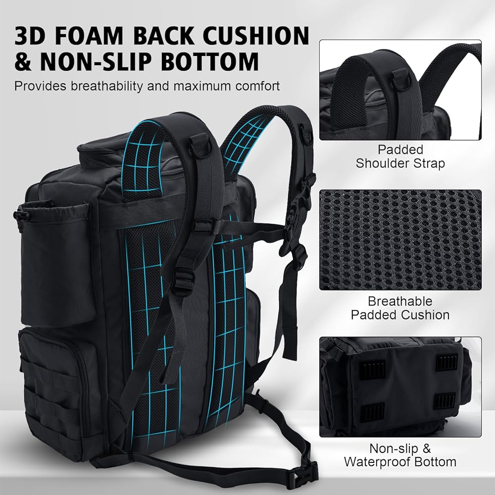 • 【مقاومة للماء وقوية】حقيبة الظهر الخاصة بنا للصيد مصنوعة من نسيج أكسفورد عالي الجودة مقاوم للماء 600D، مما يضمن مقاومة التآكل طويلة الأمد وحماية من الخدوش. تشتمل حقيبة الظهر على غطاء للمطر لضمان بقاء متعلقاتك جافة تمامًا. تعمل وسادات القدم المطاطية غير القابلة للانزلاق الموجودة في الجزء السفلي على الإمساك بأي سطح للحفاظ على حقيبتك في مكانها. شريط عاكس في الأمام يعزز الرؤية والسلامة في الليل.
