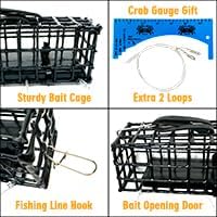 هيكل متين: مصنوع من سلك فولاذي مطلي، خالٍ من الرصاص. ويضمن تصميمه القوي المتانة ومقاومة الصدأ. تم تصميمه ليتحمل ظروف الطلب دون المساس بأدائه. هيكل جيد يحتوي على فتحات أصغر لتجنب أن يأخذ السلطعون الطعم الخاص بك ويهرب فقط. الجانب العلوي مع باب مفتوح لوضع الطعم بسهولة.
