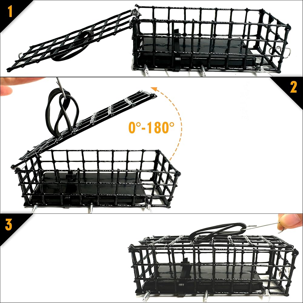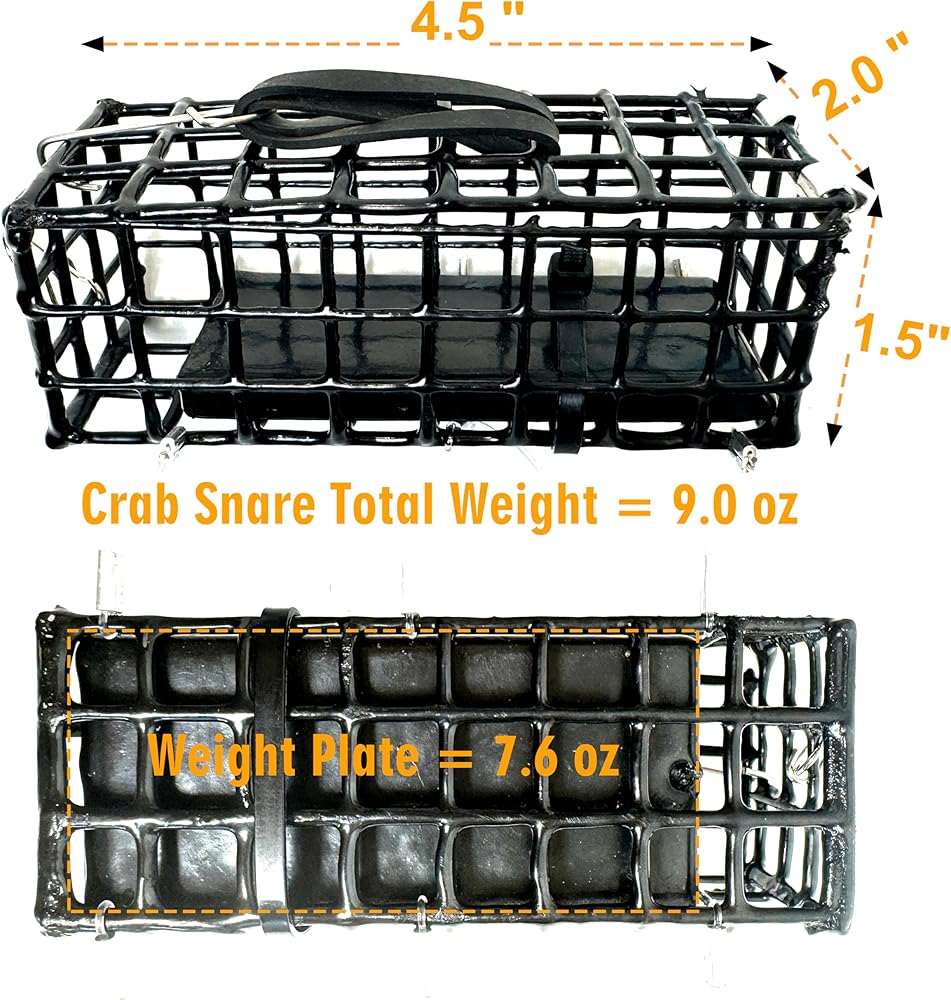 ثبات معزز: يتم تثبيت لوحة الوزن بشكل آمن في الأسفل. لقد تم تصميمه لوضع المصيدة في الموضع الصحيح تحت الماء. يزن المصيدة نفسها ما يصل إلى 9.3 أونصة. مع زيادة الوزن بحيث لا يتحرك كثيرًا بسبب التيارات. ولكنها ستكون أكثر من 10 أوقية بمجرد ملئها بالطعم. الأبعاد: 4.5 بوصة × 2 بوصة × 1 بوصة. كن حذرًا عند اختيار صنارة الصيد أو البكرة أو الخط.