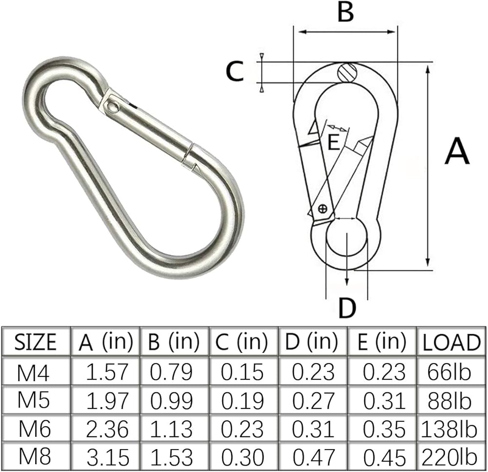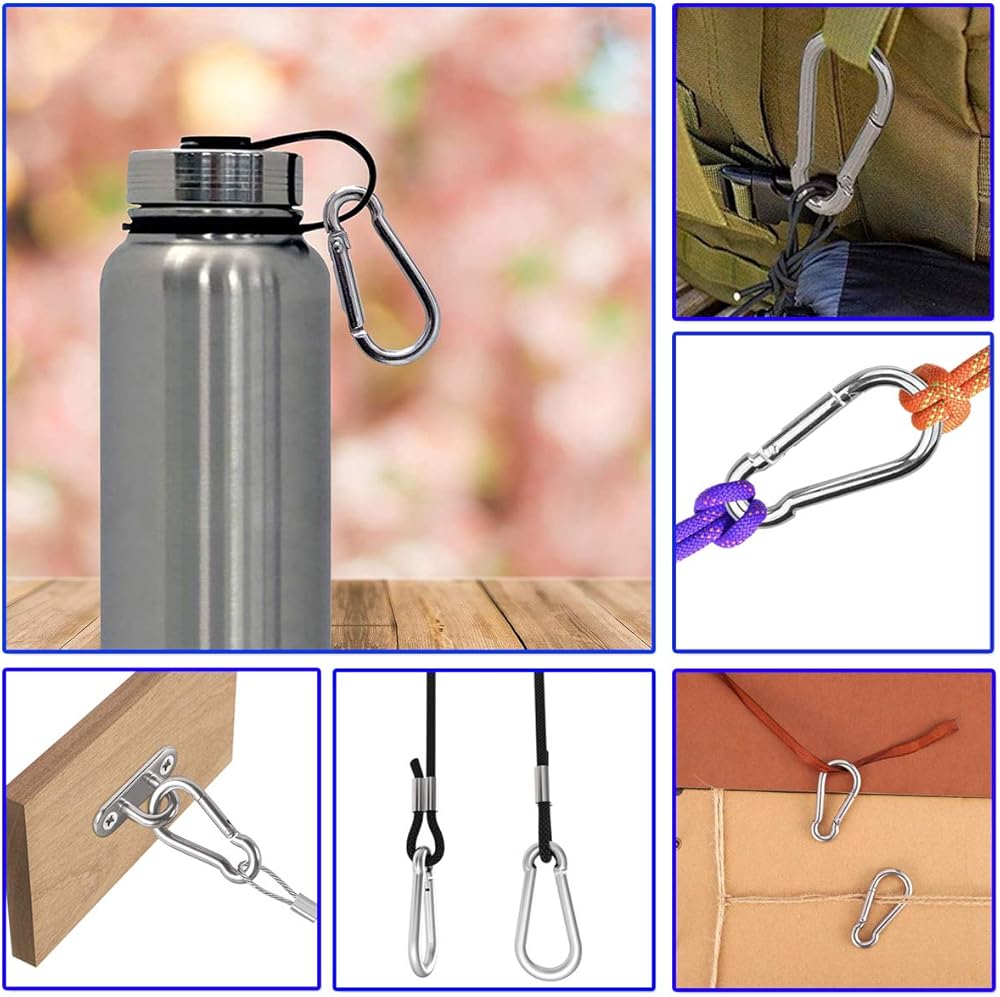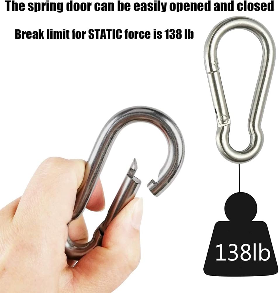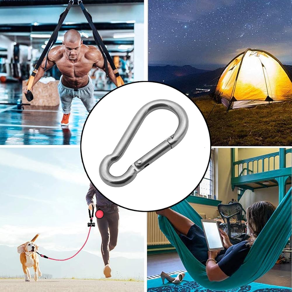 Widely Used in Home DIY Project or Outdoor: Stainless steel carabiner great for hanging cords, ropes, hoses, keys, water bottles, key rings, camping gear, hang lanterns, lights, dog leashes, pulley, rings, indoor outdoor equipment gear, rings, hardware, DIY accessories and other tools; great accessory for daily life, camping, hiking, diving, fishing, boating or other outdoor and gym activities.(NOTE: not to be used for overhead lifting,climbing adventures)