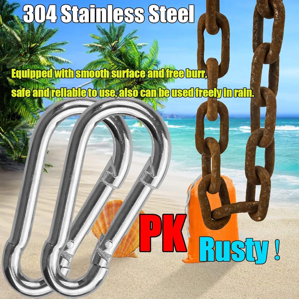 Why Choose MFOREVER Carabiners? ? AND CUSTOMER SERVICE - 30 days no reason to refund, 90-days money back policy for quality-related issues give you 100 Percent satisfaction, If you have any questions, please feel free to contact MFOREVER. Rest assured ?Made of stainless steel, it won't rust, durable.Material: 304 Stainless snap hookColor: Silver tone Carabiner clip are great for dog leash, camping, fishing, traveling, hiking, connecting items to a belt and any outdoor use, DIY accessories. Stainless steel carabiner are great for clipping my boat onto safety ropes. You can keep your keys on a carabiner clip, and a carabiner you can use in emergencies.Click 'Add to Order' Now!Note: It is not recommended to be used in mountaineering, rock climbing, ice climbing and high-altitude games for your safety.