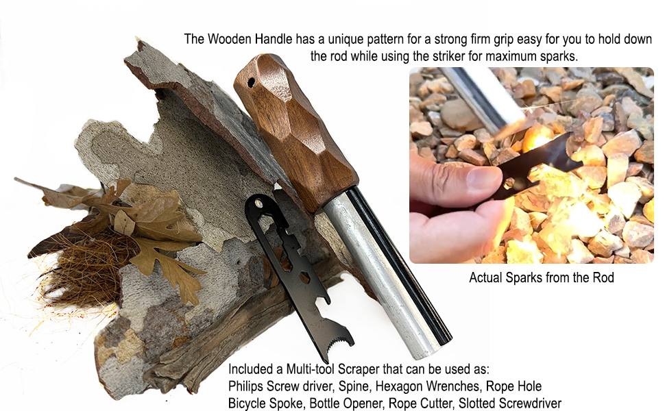 يمكن لقضيب المغنيسيوم عند كشطه إلى قطع صغيرة التقاط الشرر بسهولة وتضخيم تلك الشرر لتحسين فرصتك في إشعال النار.