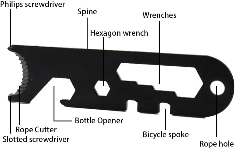 تشتمل على مكشطة متعددة الأدوات يمكن استخدامها مثل: مفك براغي فيليبس، العمود الفقري، مفاتيح ربط سداسية، فتحة حبل، شعاع دراجة، فتاحة زجاجات، قاطع حبل، مفك براغي مشقوق