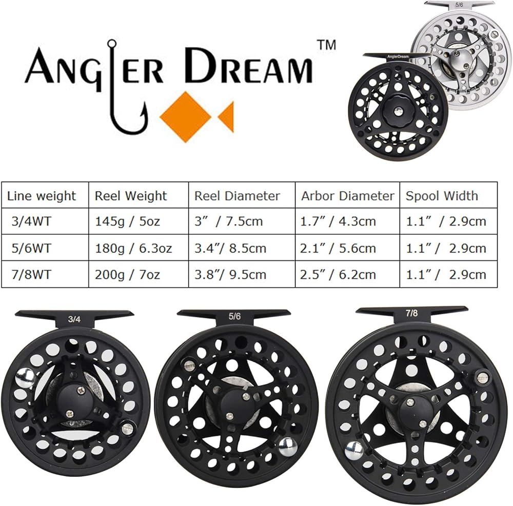 3/4 5/6 7/8WT بكرة صيد كبيرة من الألومنيوم قابلة للتعديل باللون الأسود، تحتوي على محملين كرويين، نسبة تروس 1:1، نظام سحب قرص تيفلون، يمكن استرجاع اليد اليمنى واليسرى.