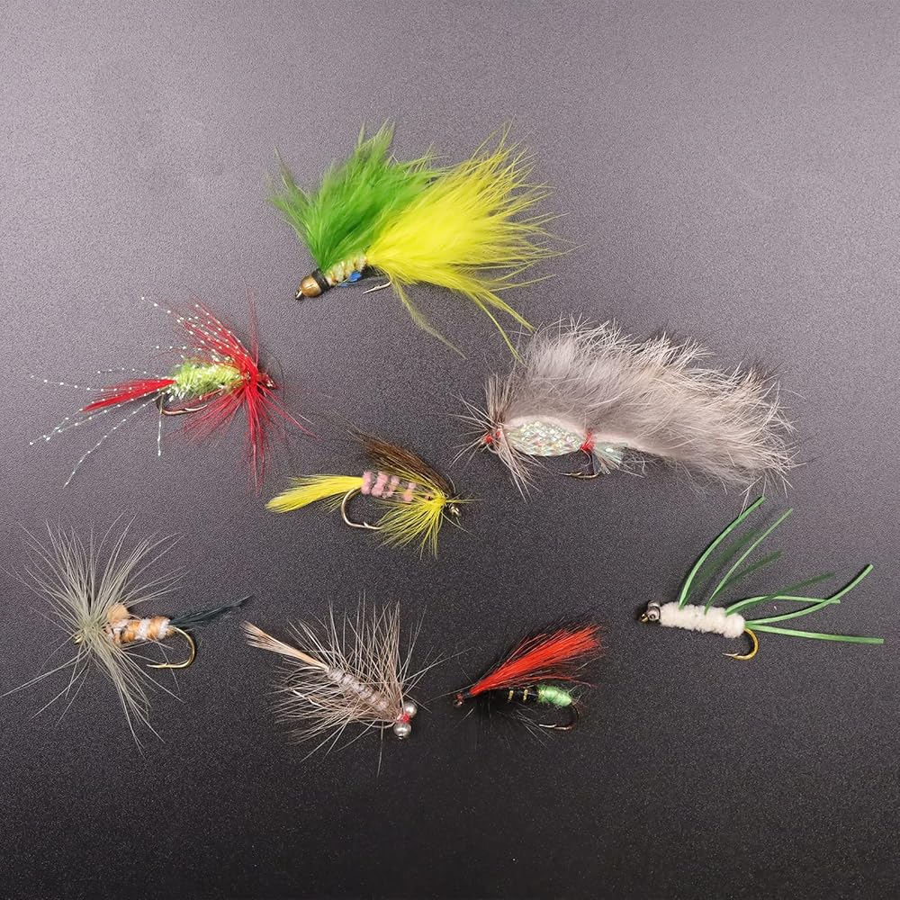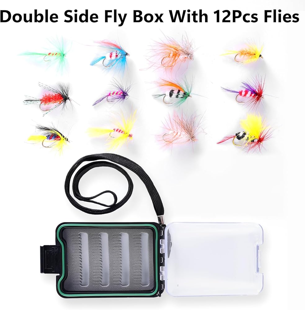 ذباب سمك السلمون المرقط عالي الجودة (12 قطعة) لصيد الأسماك بالذبابة مع صندوق ذبابة مقاوم للماء.