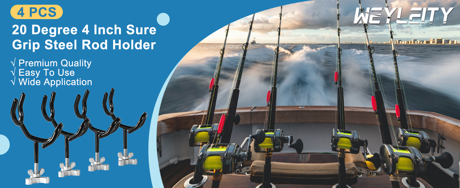 【زاوية فعالة】 ضع في اعتبارك أن حاملات القضبان لقارب الصيد تحافظ على زاوية 20 درجة، مما يمنع أطراف العمود الطويلة من الغمس في الماء. يضمن هذا التصميم تجربة صيد فعالة وفعالة، خاصة في حالات مثل الصيد المنجرف، والصيد في المقلاة، وصيد الكرابي.
