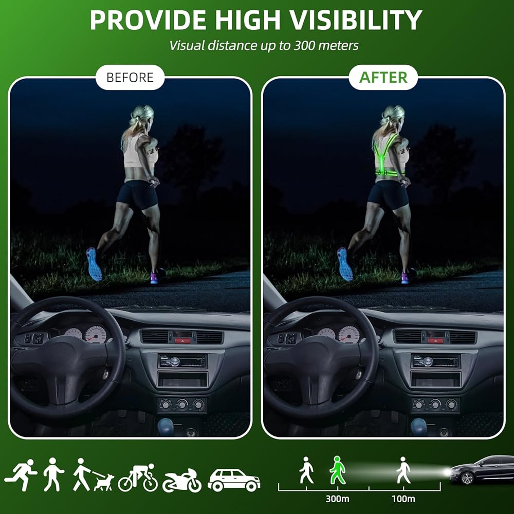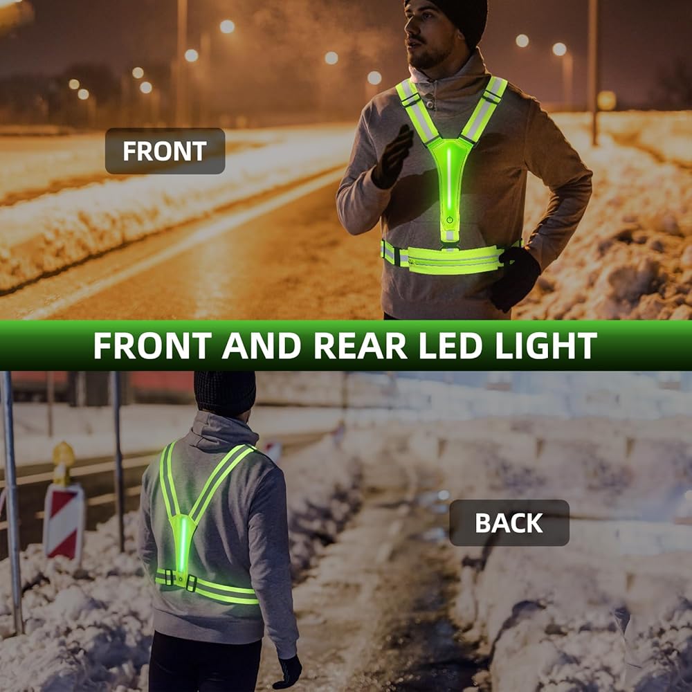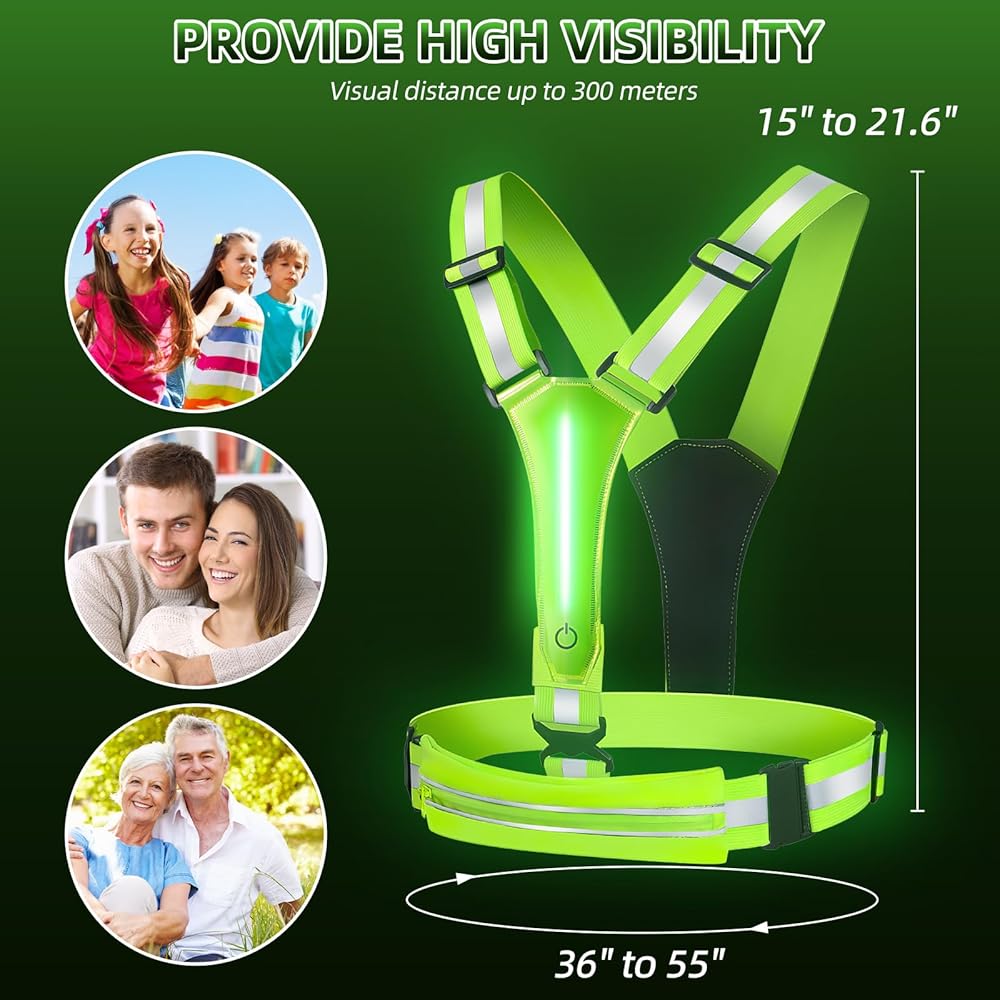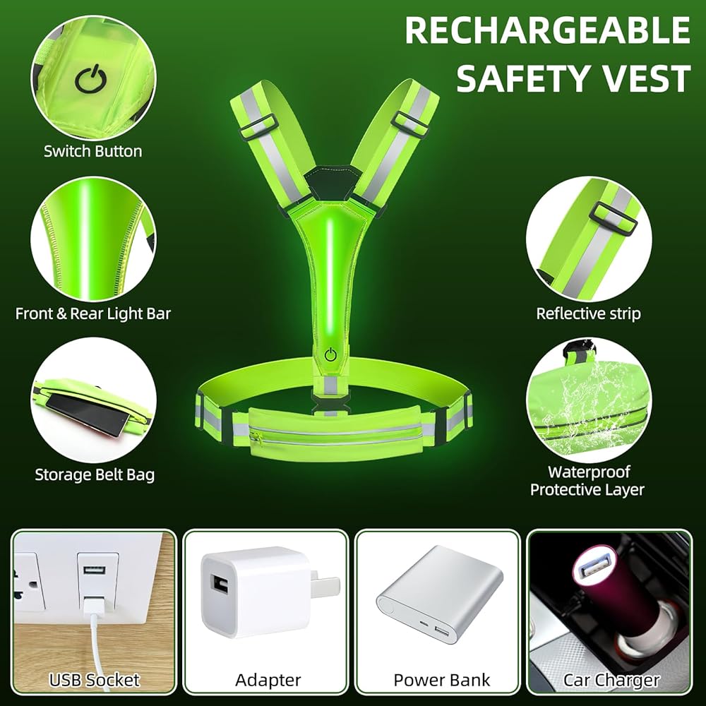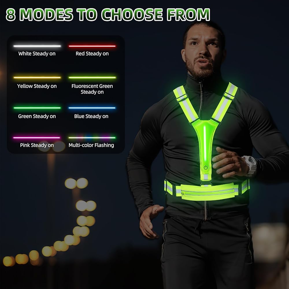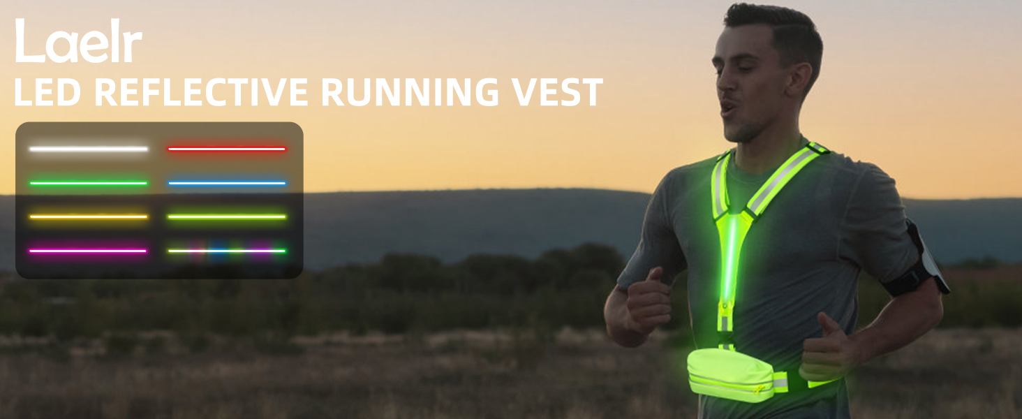 سترة Laelr LED العاكسة للجري، سترة أمان عالية الوضوح وقابلة لإعادة الشحن وقابلة للتعديل، 8 أوضاع، سترة مضيئة مع شرائط عاكسة، حقيبة حزام للمشي الليلي، ركوب الدراجات، المشي، الرجال والنساء