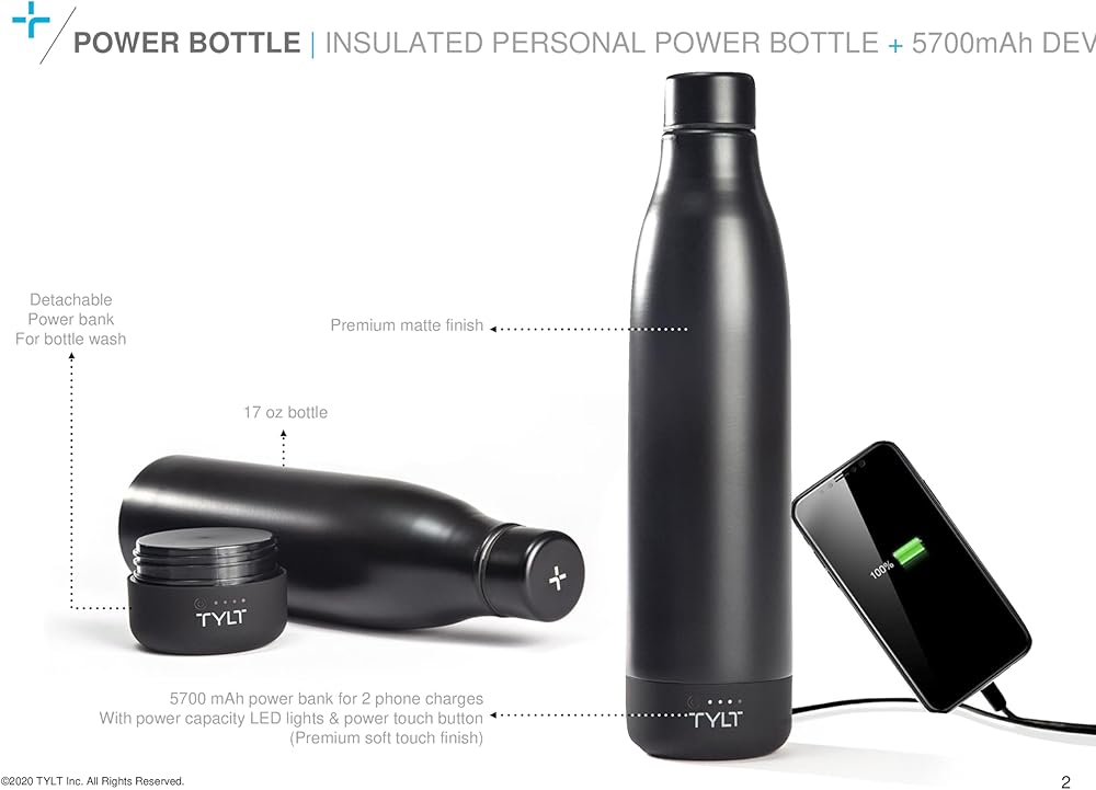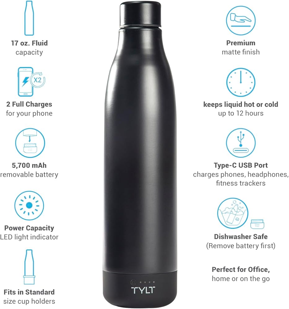 Elevate your on-the-go experience with our Portable Charger Power Bank Smart Water Bottle, a versatile and innovative solution that combines hydration and device charging in one sleek package. Whether you're a tech-savvy traveler, a fitness enthusiast, or an outdoor adventurer, this product is designed to enhance your lifestyle in multiple ways. This stainless water bottle boasts a formidable 5,700mAh battery, providing up to two full charges for a range of devices, including 8, 8 Plus, X, Xs, Xs Max, Xr, 11, 11 Pro, 11 Pro Max, SE, 12 mini, 12, and 12 Pro, and Samsung models like Galaxy S8, S8+, Note 8, S9, S9+, Note 9, S10, S10+, Note10, Note10+, S20, S20+, and S20 Ultra 5G. Say goodbye to the frustration of drained batteries while you're out or traveling; this serves as an emergency power bank. The battery compartment effortlessly screws off, allowing you to maintain the bottle's hygiene. You can confidently use it for both water and charging without any worries. This bottle keeps your beverages at the perfect temperature. The double-layer vacuum insulation ensures your drinks stay hot or cold for up to 12 hours. The sleek and modern aesthetics of both the classic bottle and cap elevate your style. This heavy duty power bank, with fast charging capabilities, is more than just a product; it's a lifestyle upgrade. Stay hydrated and keep your devices charged and ready for action.
