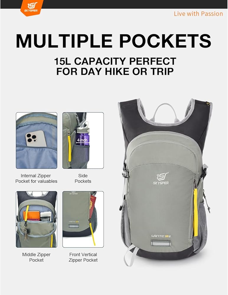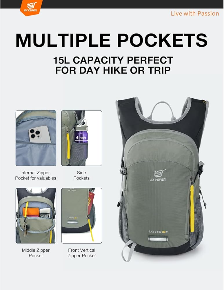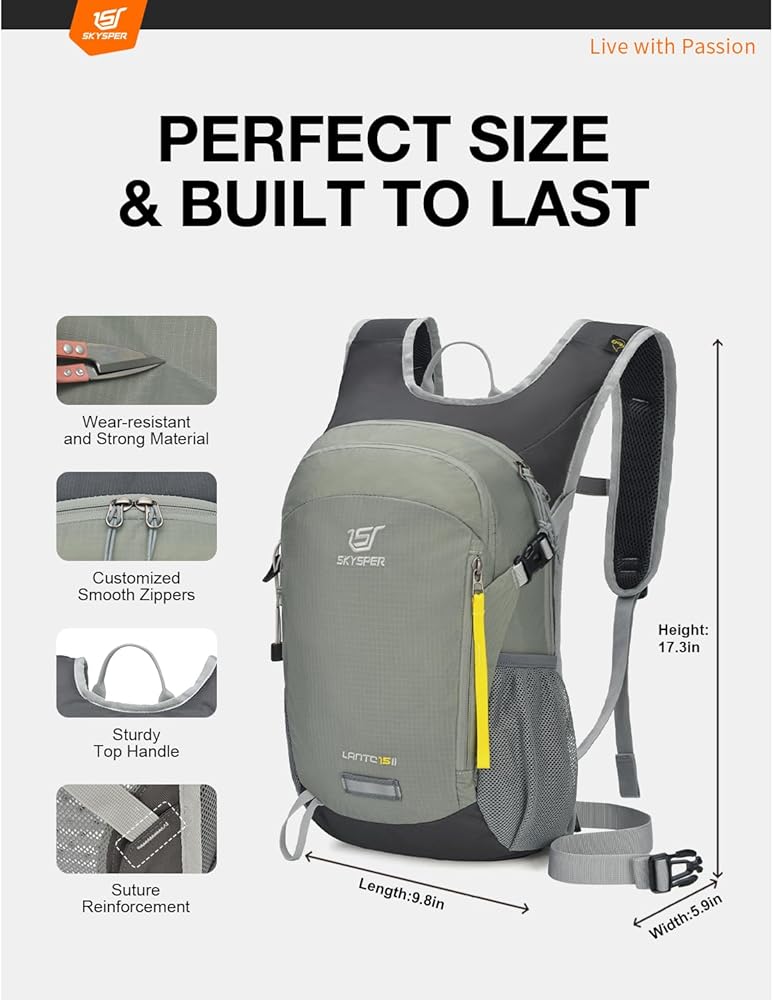 【حقيبة ظهر خفيفة الوزن وقابلة للتنفس】: بوزن 0.44 كجم فقط، تم تصميم حقيبة الظهر الصغيرة هذه بسعة 15 لتر مع وضع راحتك طوال اليوم في الاعتبار. تحافظ اللوحة الخلفية المريحة والمسامية على انتعاشك، في حين أن أحزمة الكتف المبطنة والظهر تدعمك في كل خطوة. حزام الصدر وحزام الخصر القابلان للتعديل يضمنان الثبات والملاءمة الجيدة.
