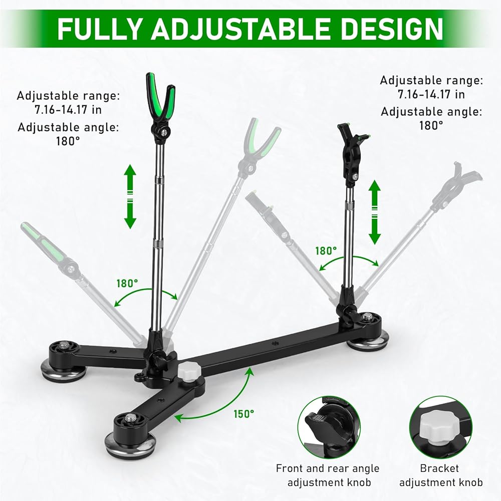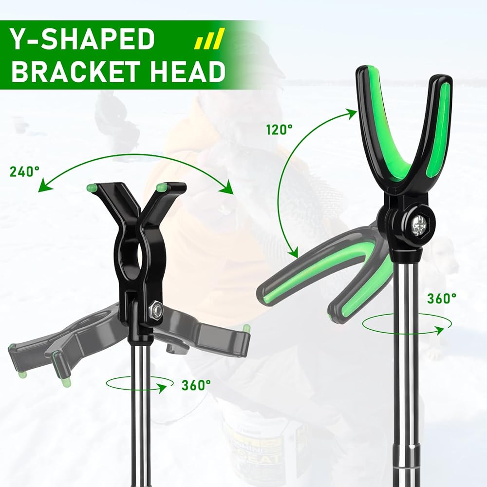 • 3. تصميم قابل للتعديل بالكامل: يمكن تعديل الأرجل على جانبي حامل الصيد الجليدي هذا حتى 150 درجة على كلا الجانبين. بعد ضبط الدعامة، يمكنك تثبيت طرف القضيب في الهيكل على شكل حرف Y في الجزء الأمامي من حامل القضيب ووضع مقبض صنارة الصيد على الرف على شكل حرف U مع حماية ناعمة من السيليكون. يمكنك ضبط زاوية الأرجل التي تحتاجها عن طريق ضبط المقابض الموجودة أسفل الأرجل. بعد تحديد الزاوية التي تحتاجها، يمكنك الانتظار حتى تأخذ السمكة الكبيرة الطعم!