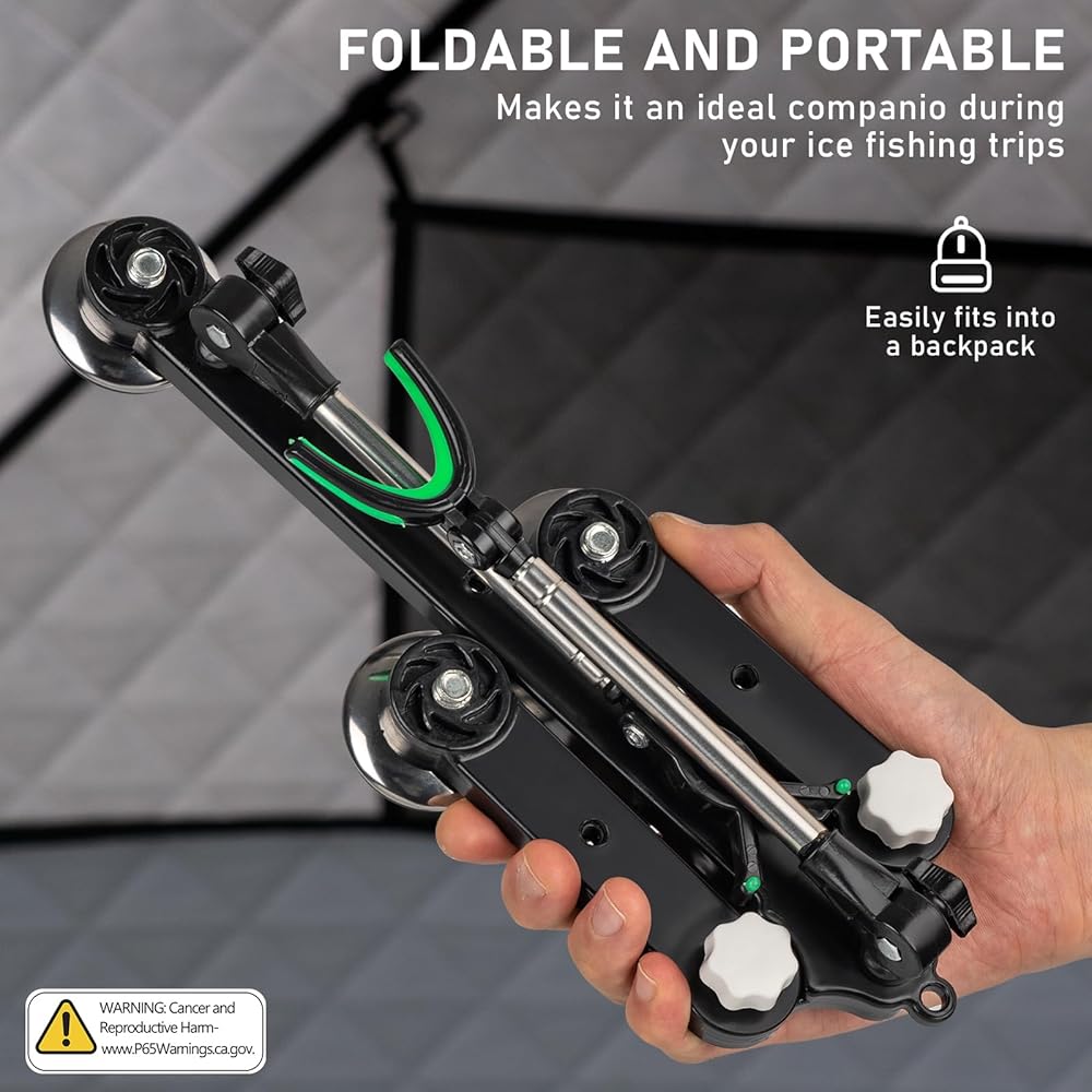• 5. الحد الأقصى قابل للطي والمحمول: حجم حامل القضيب هذا عند فتحه هو 12*10*16.5 بوصة، والحجم المطوي هو 12*4*2.5 بوصة فقط. سوف نقدم حقيبة تخزين لكل حامل صيد على الجليد، مما يجعلها أكثر ملاءمة لك للحمل. بالإضافة إلى ذلك، يبلغ وزن حامل صنارة الصيد هذا 0.6 رطل فقط، مما يجعل من السهل عليك النقل بين وجهات الصيد. يمكنك إحضار عدة حاملات أخرى للصنارة لتسهيل إعداد صنارة الصيد في كل حفرة صيد.