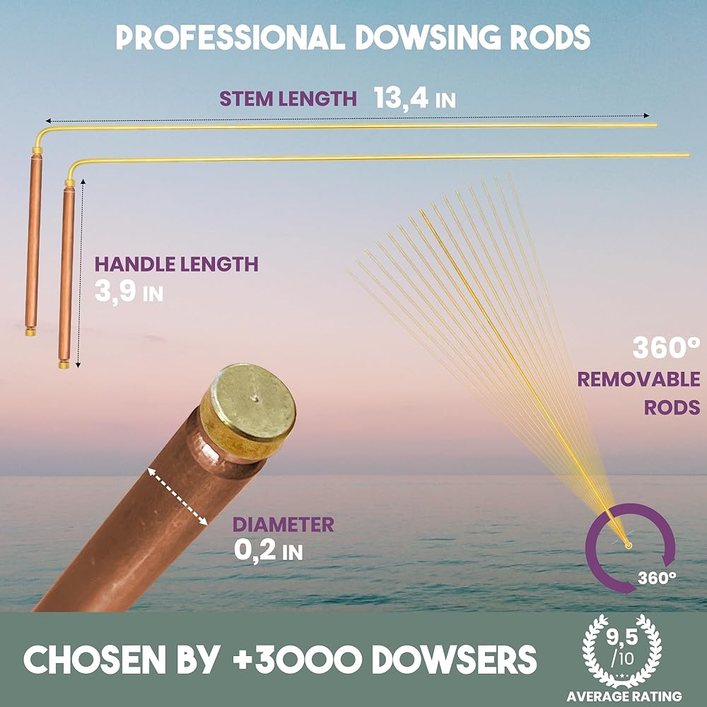 ✅ DOWSING RODS: Professional Divining Rods Perfect For Water, Gold, Metals, Treasure Finding, Ghost Hunting ✅ DIVINING RODS: Adapted For All Kinds Of Dowsing Practices & Paranormal Uses (Gost Hunting, Geobiology, Astrology, Search For Objects or People). ✅ PERFECT DOWSING RODS: for for beginners, as well as for more experienced Radiesthesists 🌳 ECO-FRIENDLY: We Compensate The Carbon Emissions Caused By The Transport Of The Dowsing Rods With Our Reforestation Program! ❤️ MONEY BACK GUARANTEE: Get Refund if you're not satisfied with your Divining Rods ❤️