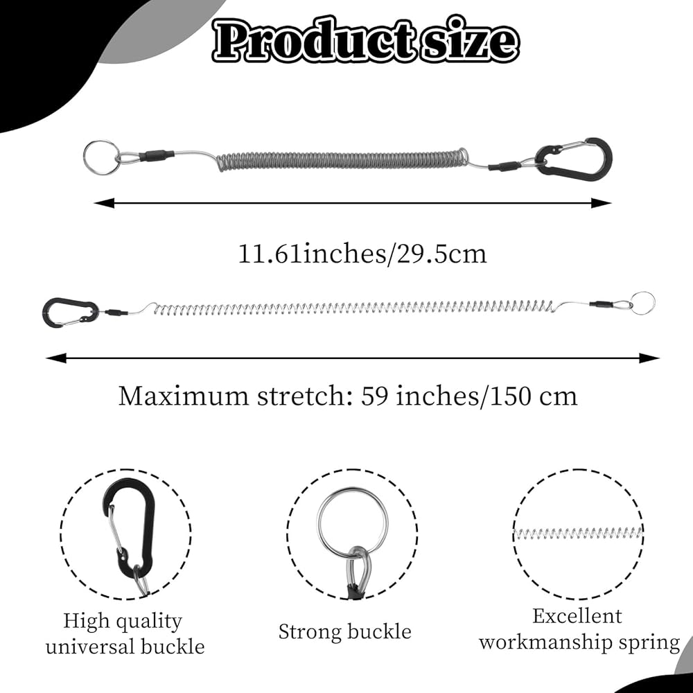 【Versatile Uses】: The steel wire coiled lanyard with split rings is widely used in mountaineering, hiking, cycling, rafting, tourism, fishing, camping, boating, hiking, sailing and other outdoor sports, you can link the leash fishing rod to your Backpacks, belts, kayaks, used to hang keys, whistles, documents, fishing pliers and other tools.