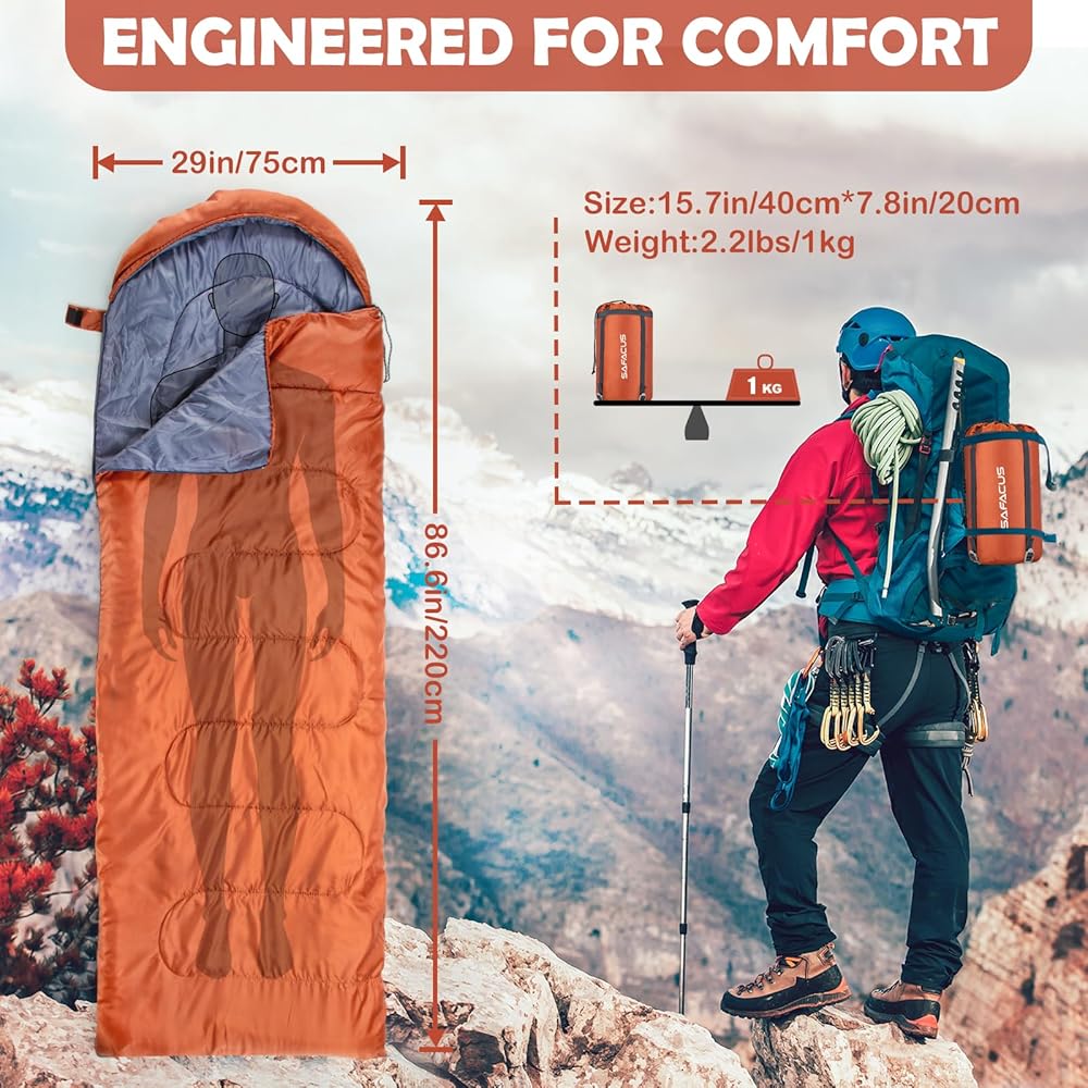 WARM & COSY: This Sleeping Bag for Adults & Kids by SAFACUS combines a warm 200G/M2 hollow fiber filling, helping to keep you warm and comfortable when camping, hiking or travelling in spring, summer and autumn