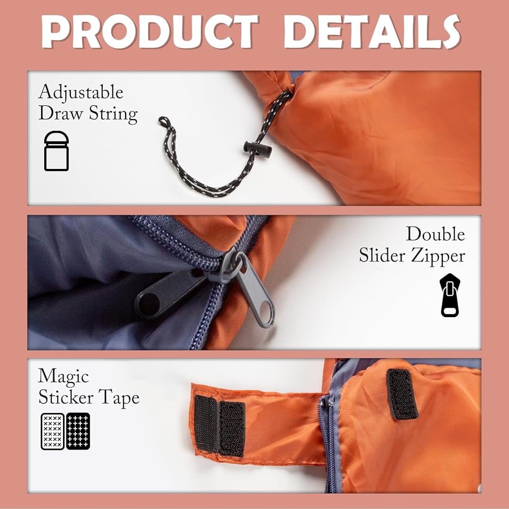 3 SEASON SLEEPING BAG! - Temperature ratings: Comfort 59℉- 68℉ (15°C~20℃) , Limit 50℉/10°C. Camping sleeping equipment for all weather!