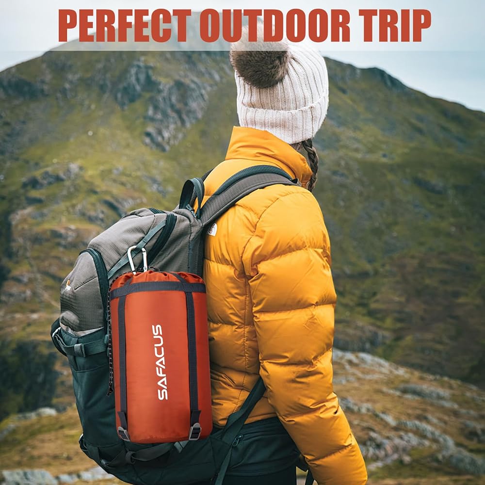 LIGHTWEIGHT & EASILY TO CARRY: Lightweight with a drawstring bag to conveniently store and carry. Clips and straps keep it ultra-compact when the sleeping bag is stored inside it. Makes it easier to carry with the rest of your gear.